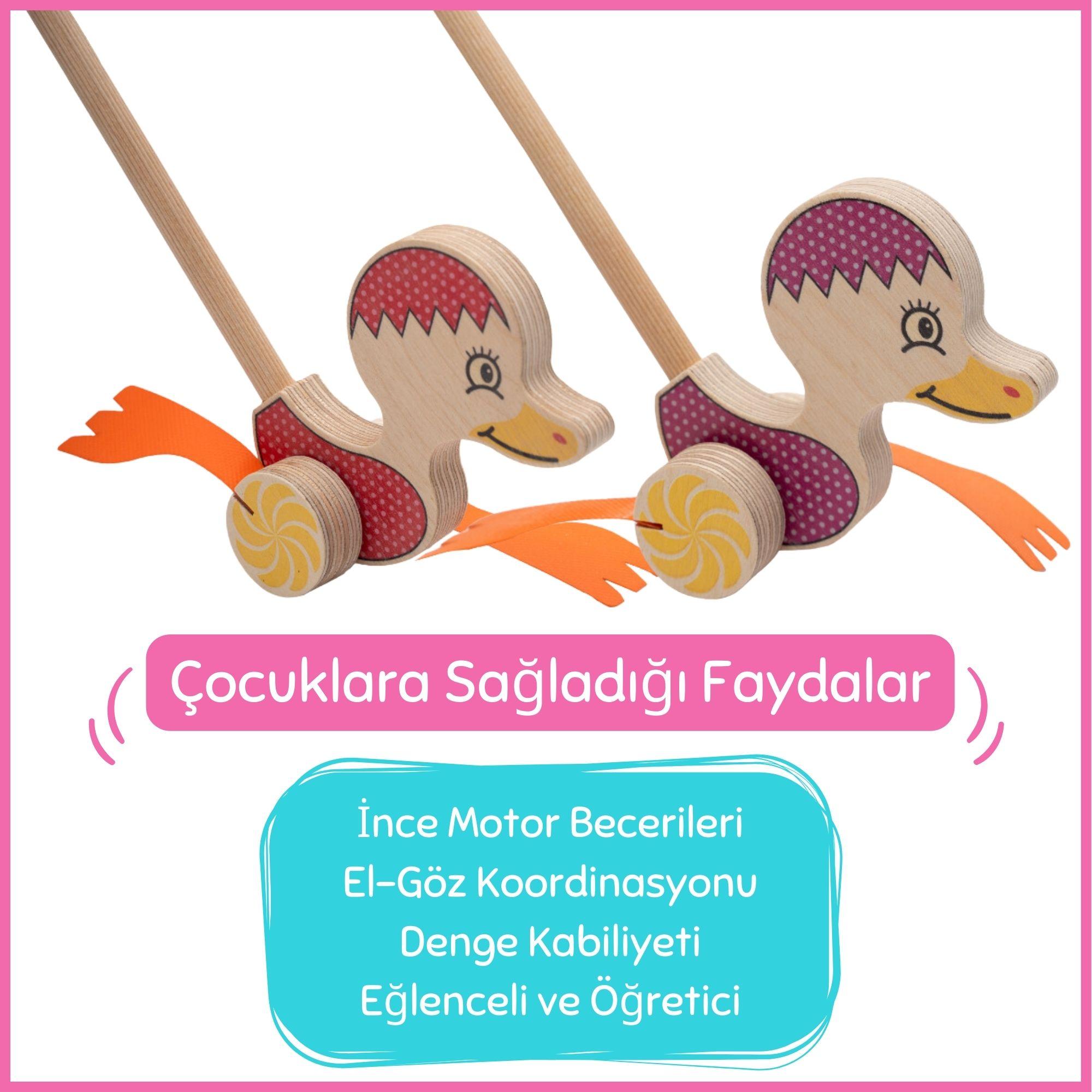 Eğitim Amaçlı: Hareket ettikçe tekerlekleriyle kanatları açılıp kapanan eğlenceli bir tasarıma sahiptir. Çocukların ince motor becerileri, el-göz koordinasyonu, yürüme becerisi, denge ve koordinasyon yeteneklerini geliştirmelerine yardımcı olur.