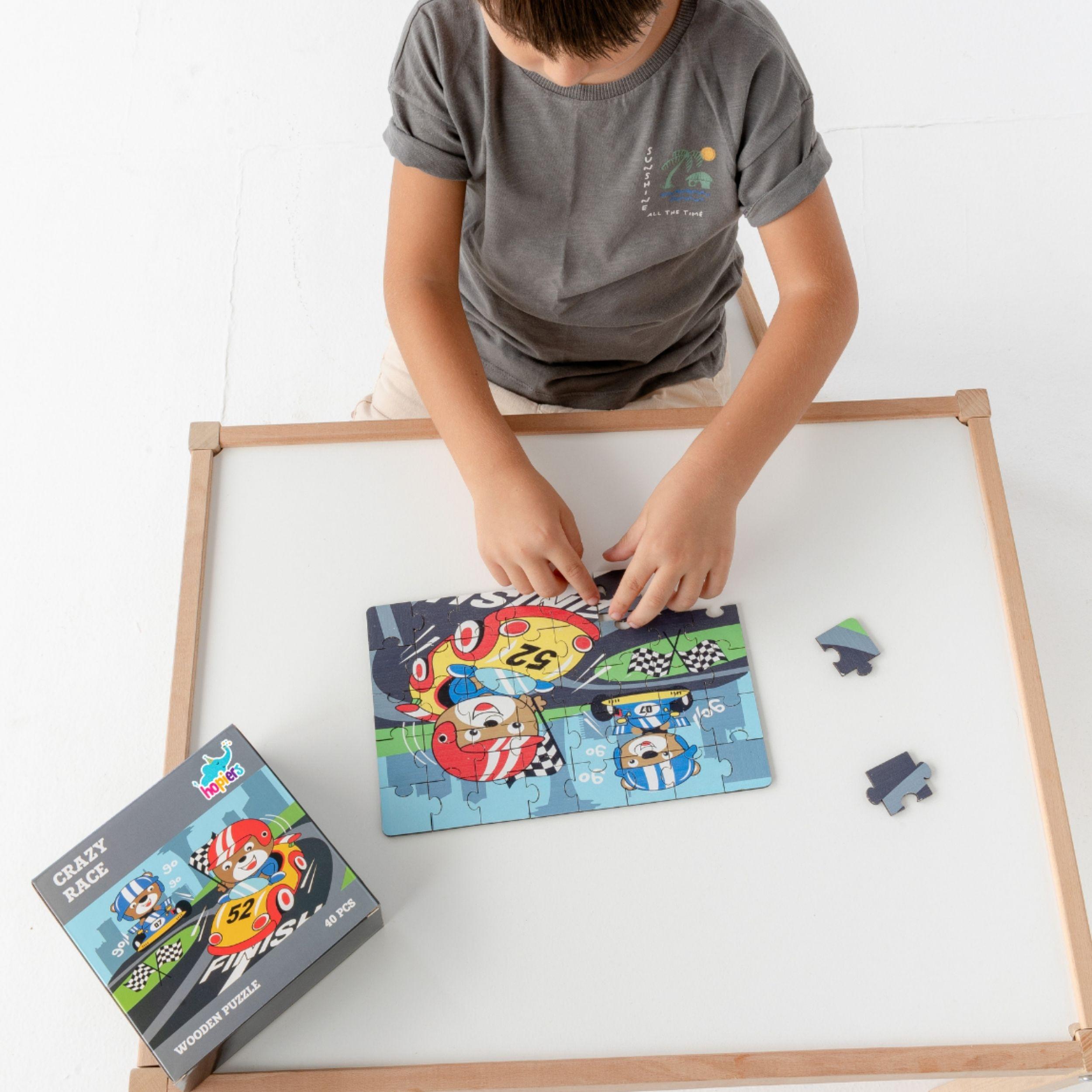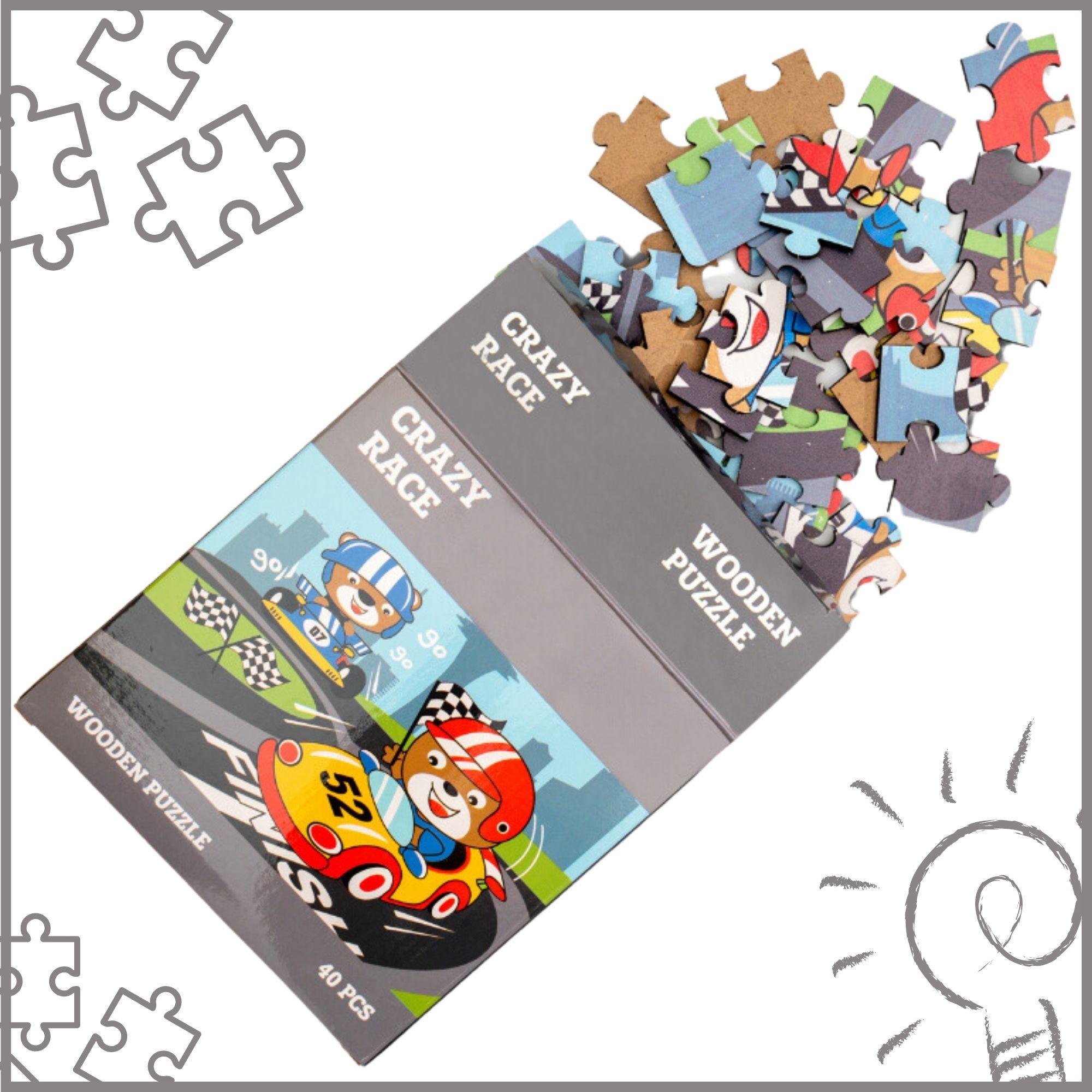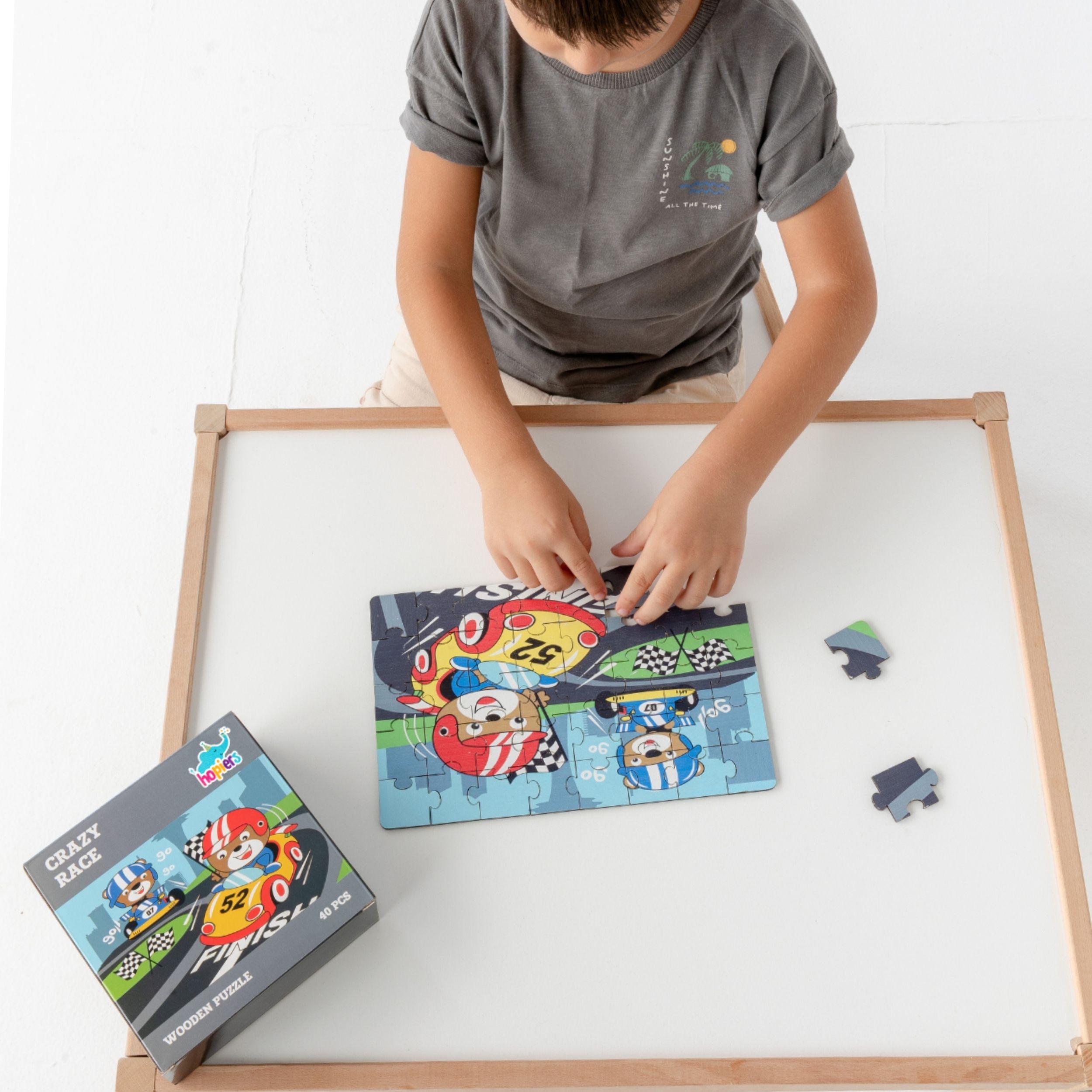 Grup Oyunu:Crazy Race Ahşap 40 Parça Puzzle Seti, çocukların birlikte çalışarak tamamlayabileceği eğlenceli bir aktivite olarak kullanılabilir, bu da sosyal becerilerin gelişimini destekler.