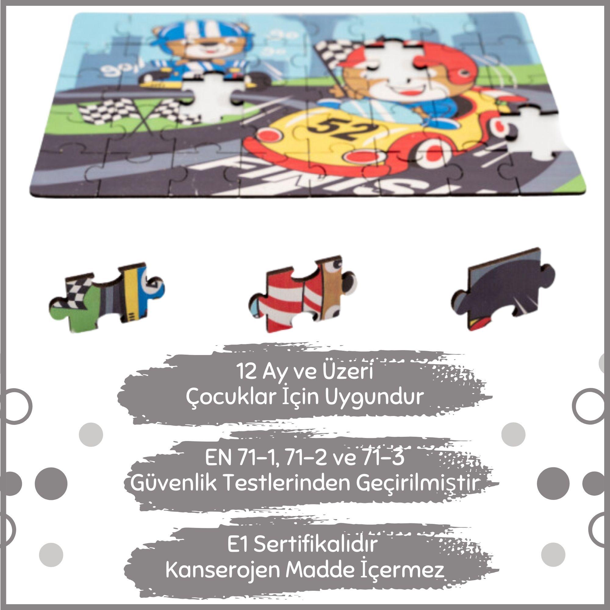Montessori Crazy Race Ahşap 40 Parça Puzzle/ 1+ Yaş/ Eğitici, öğretici ve Güvenli Çocuk Oyuncağı
