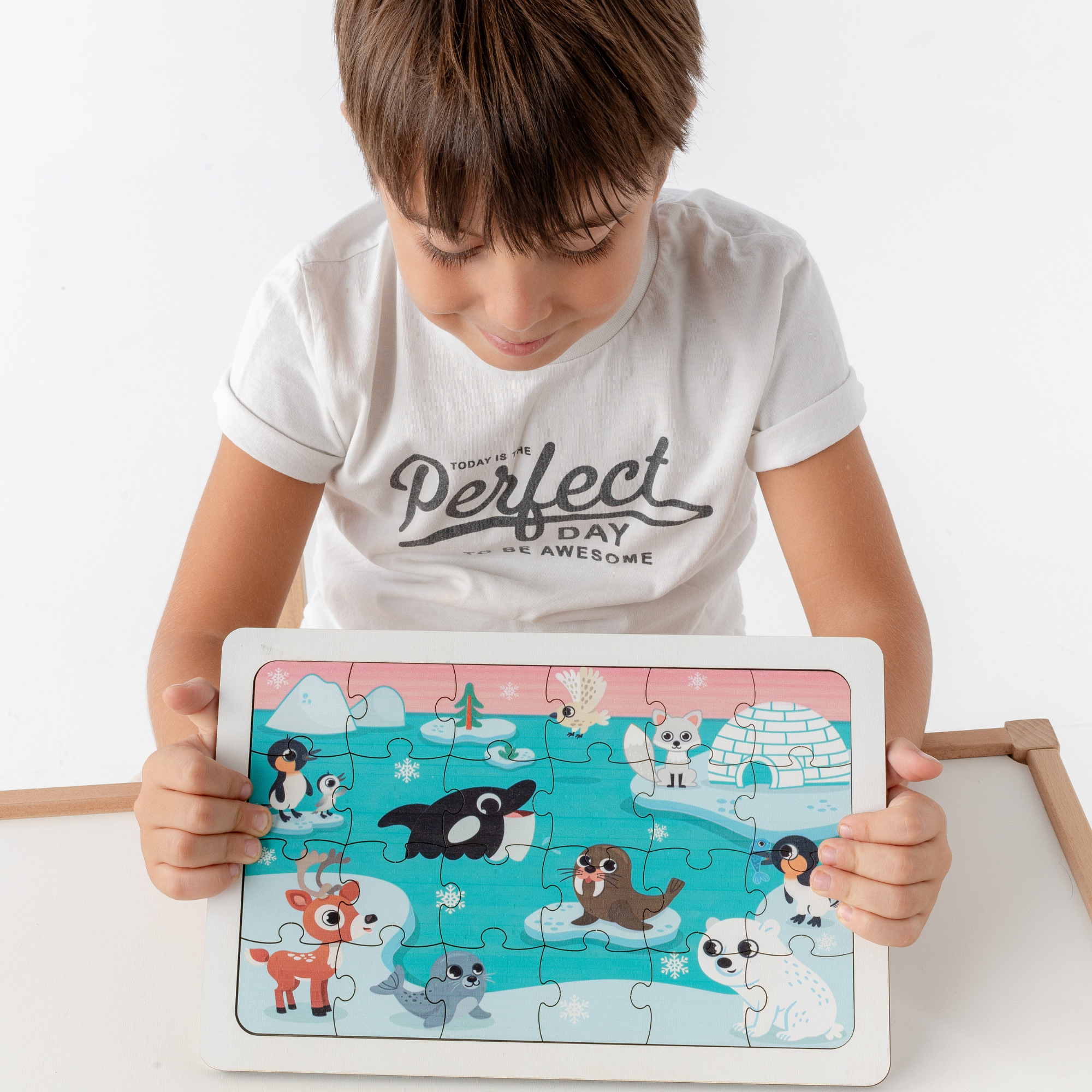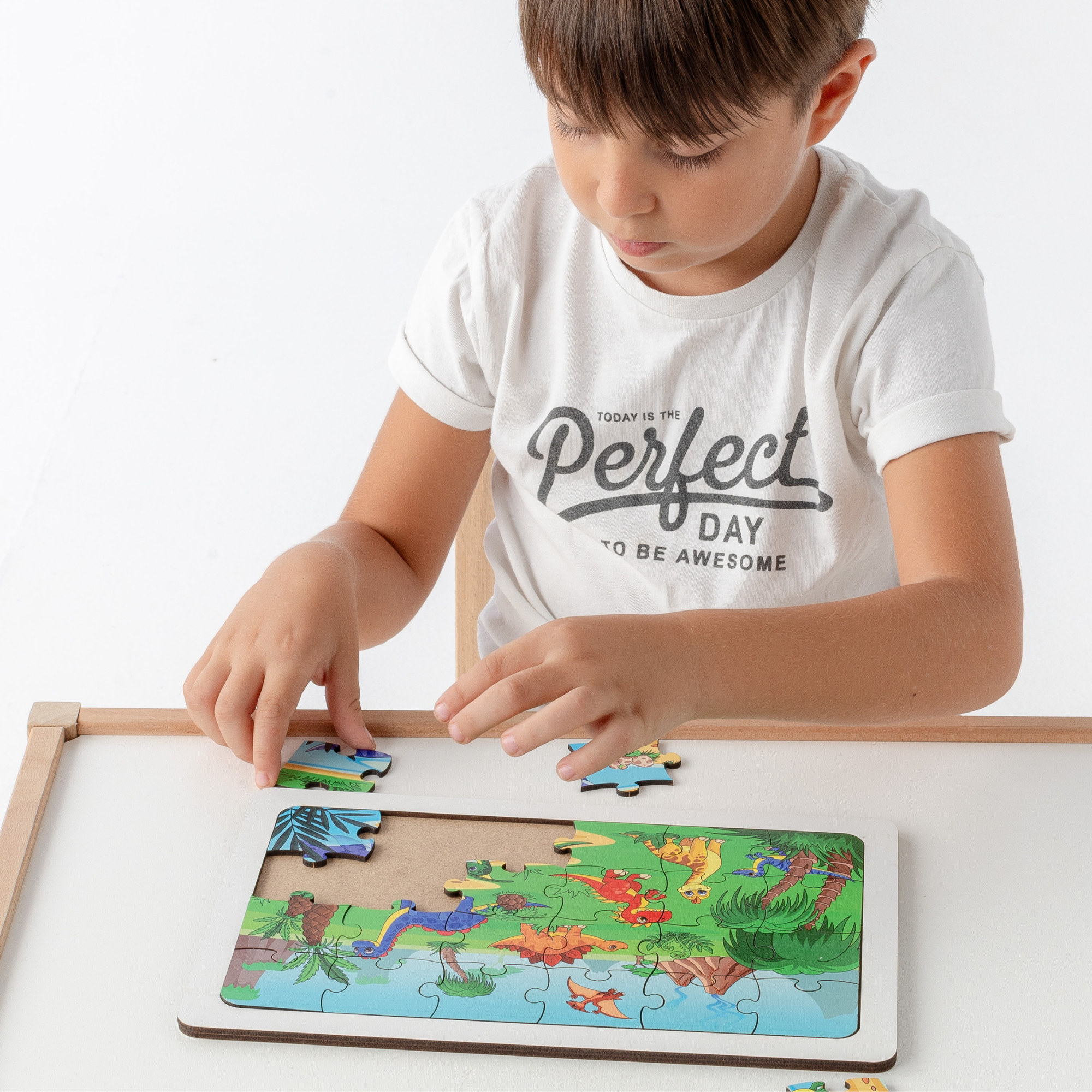 Çevre dostu malzemelerden üretilmiş, dayanıklı ve güvenli bir yapıya sahip bu puzzle seti, çocukların kendi kendine öğrenme süreçlerini destekler.
