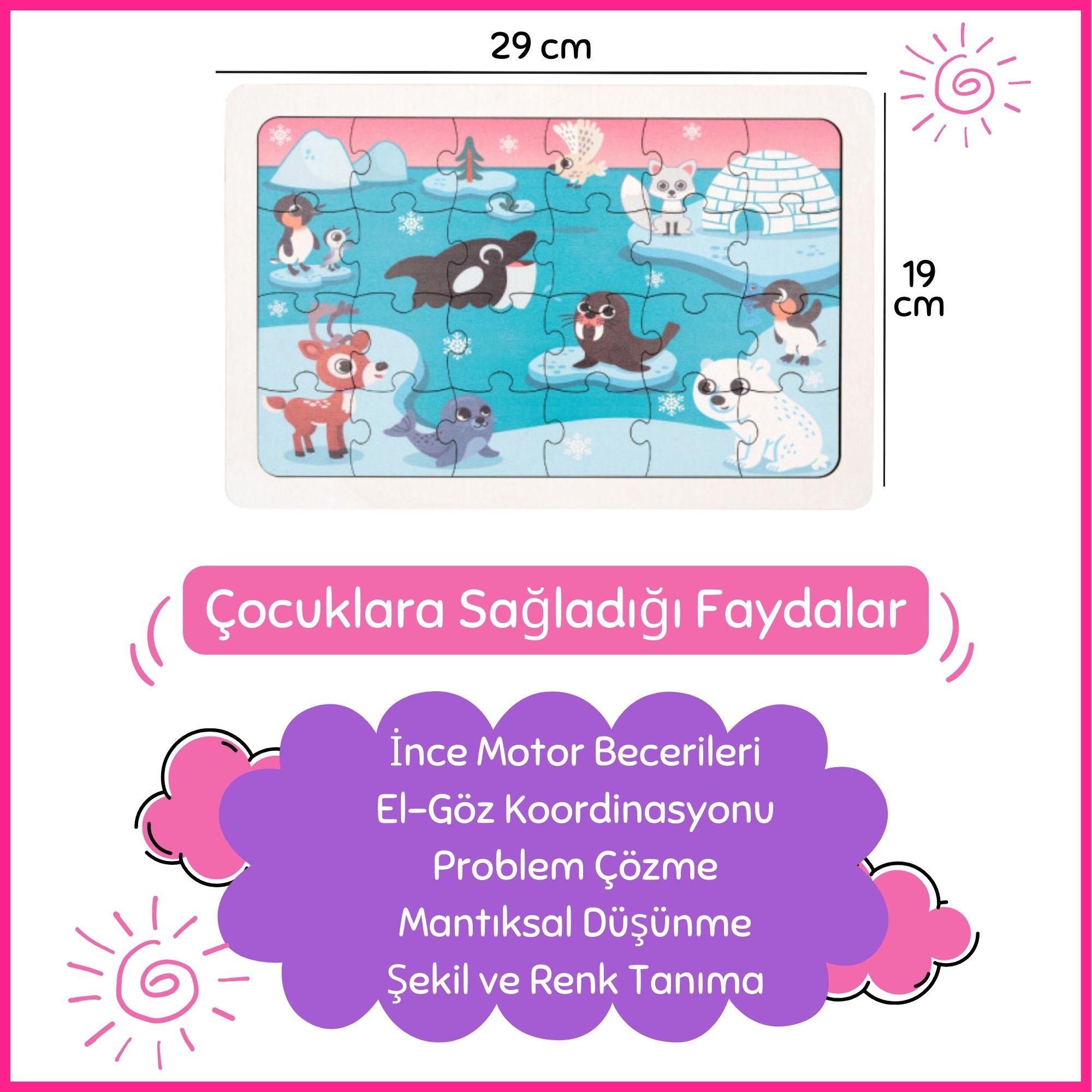 Parça Sayısı: Herbiri 24 parçadan oluşan bu puzzle setleri ile çocukların dikkatini ve odaklanmasını artıran bir puzzle deneyimi sunar.