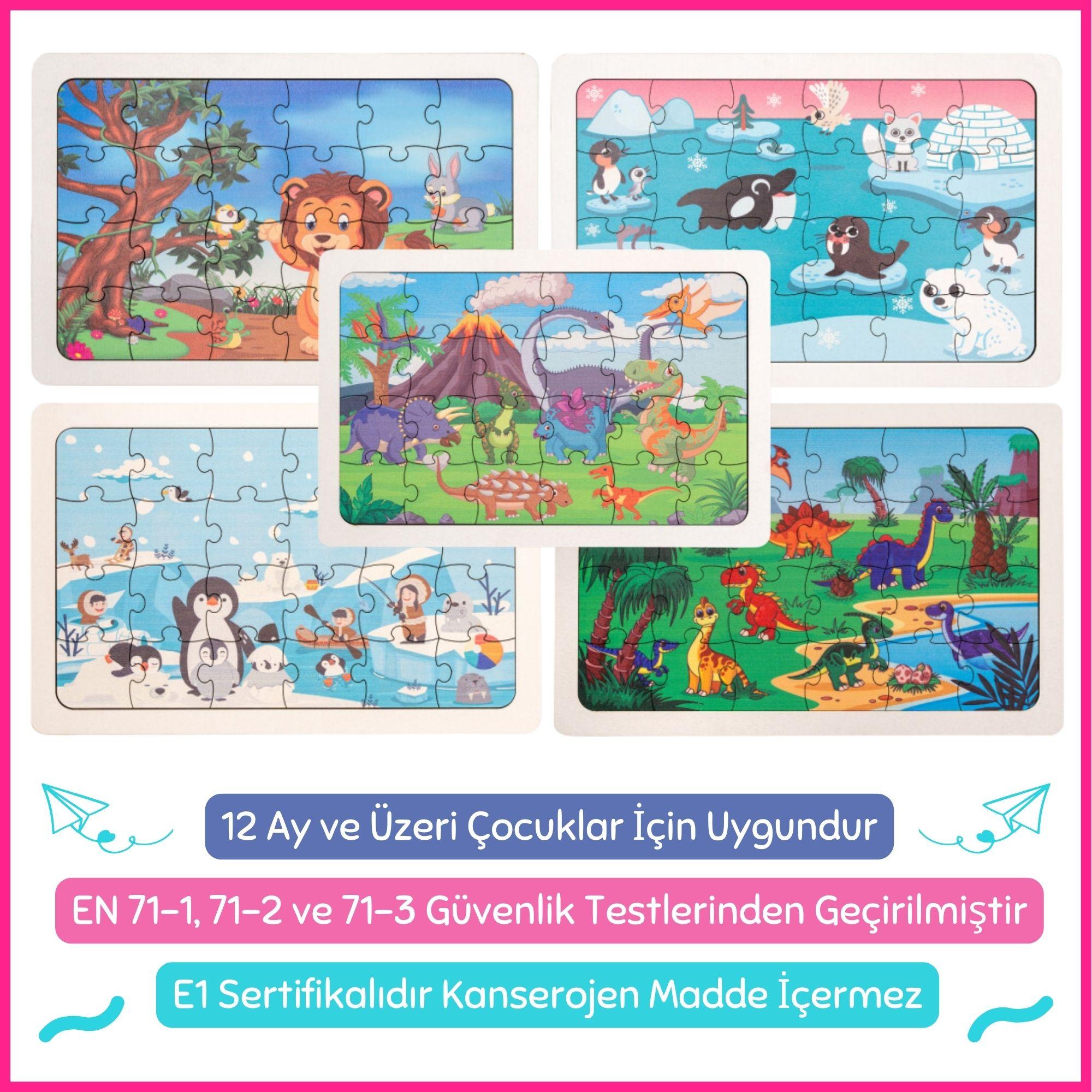 Paket İçerisinde Her Biri 24 Parçadan Oluşan 5 Adet Puzzle Seti Bulunmaktadır.