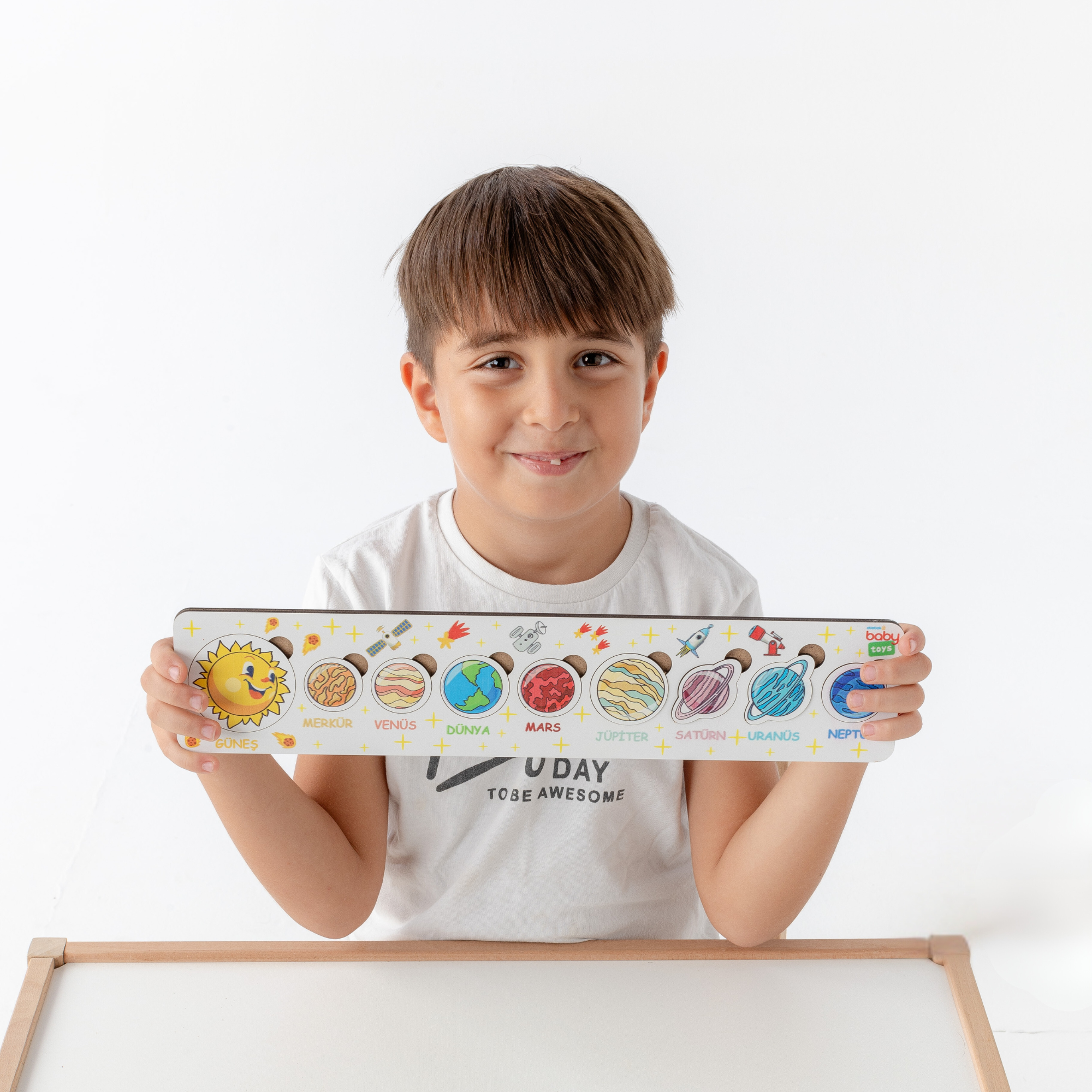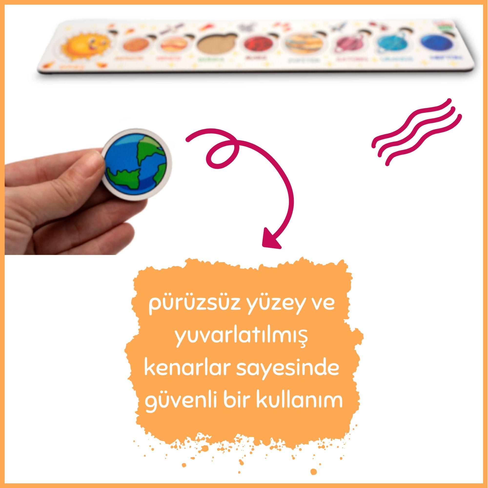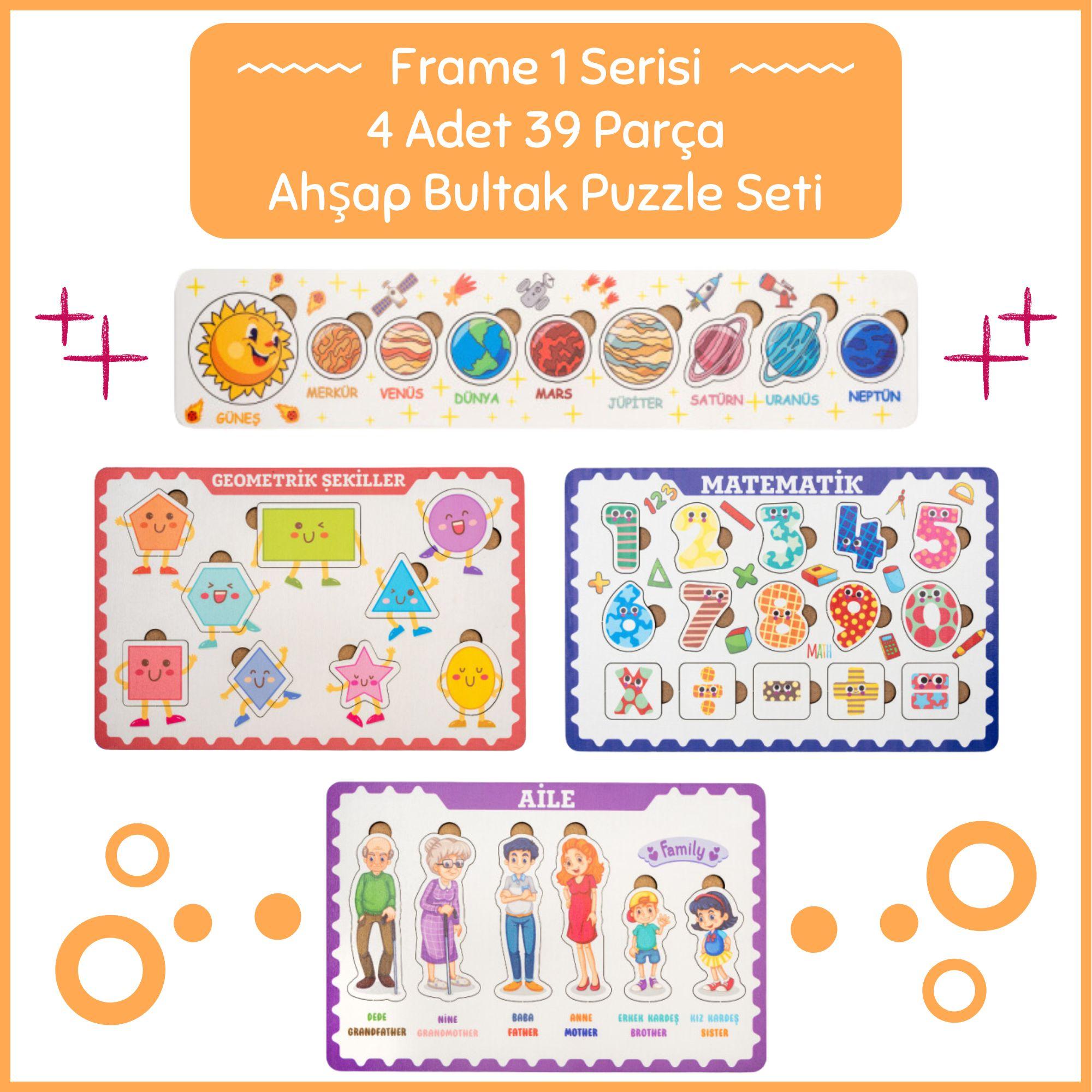 Paket İçerisinde Gezegenler, Geometrik Şekiller, Matematik ve Aile Temalı Bultak Puzzle lar Vardır.
