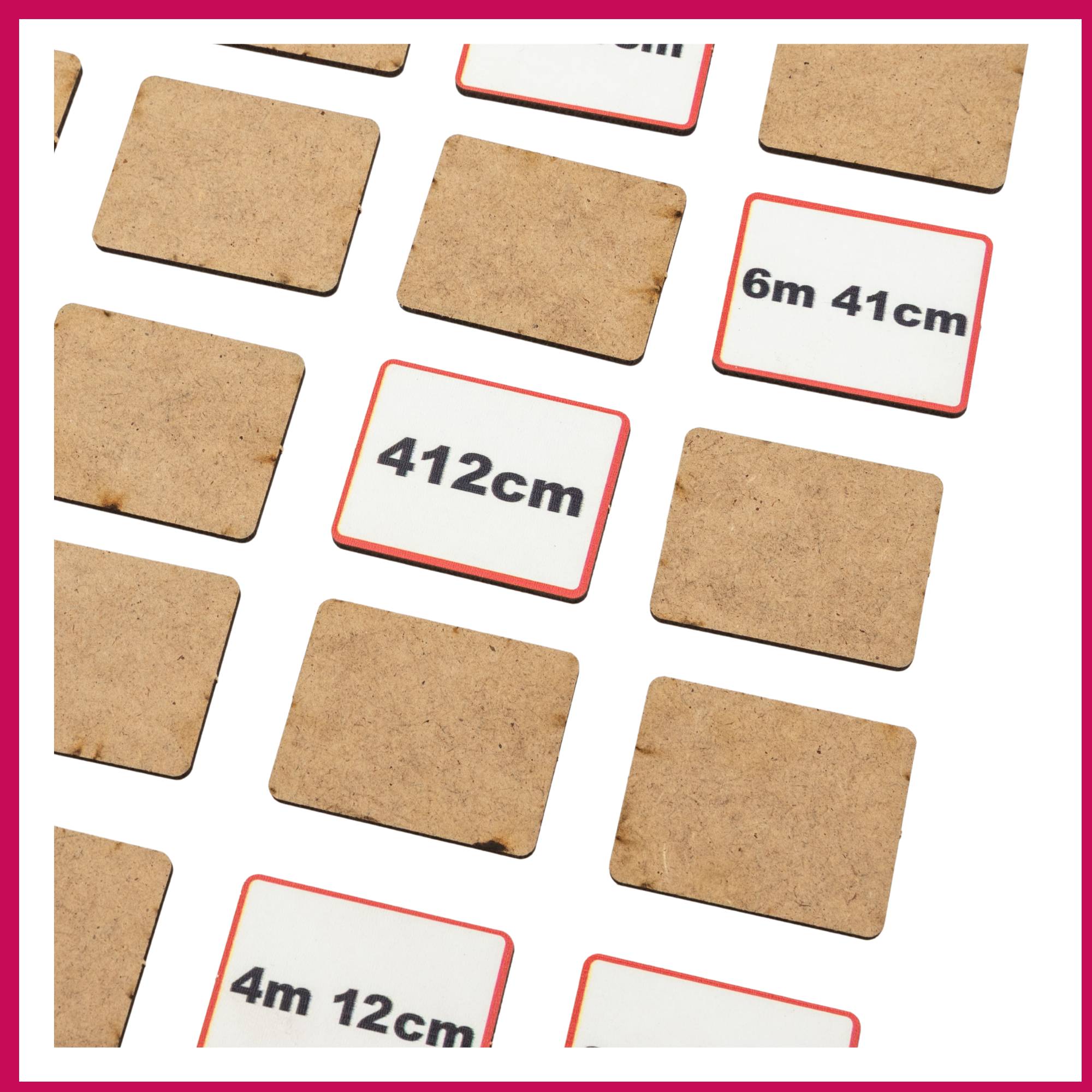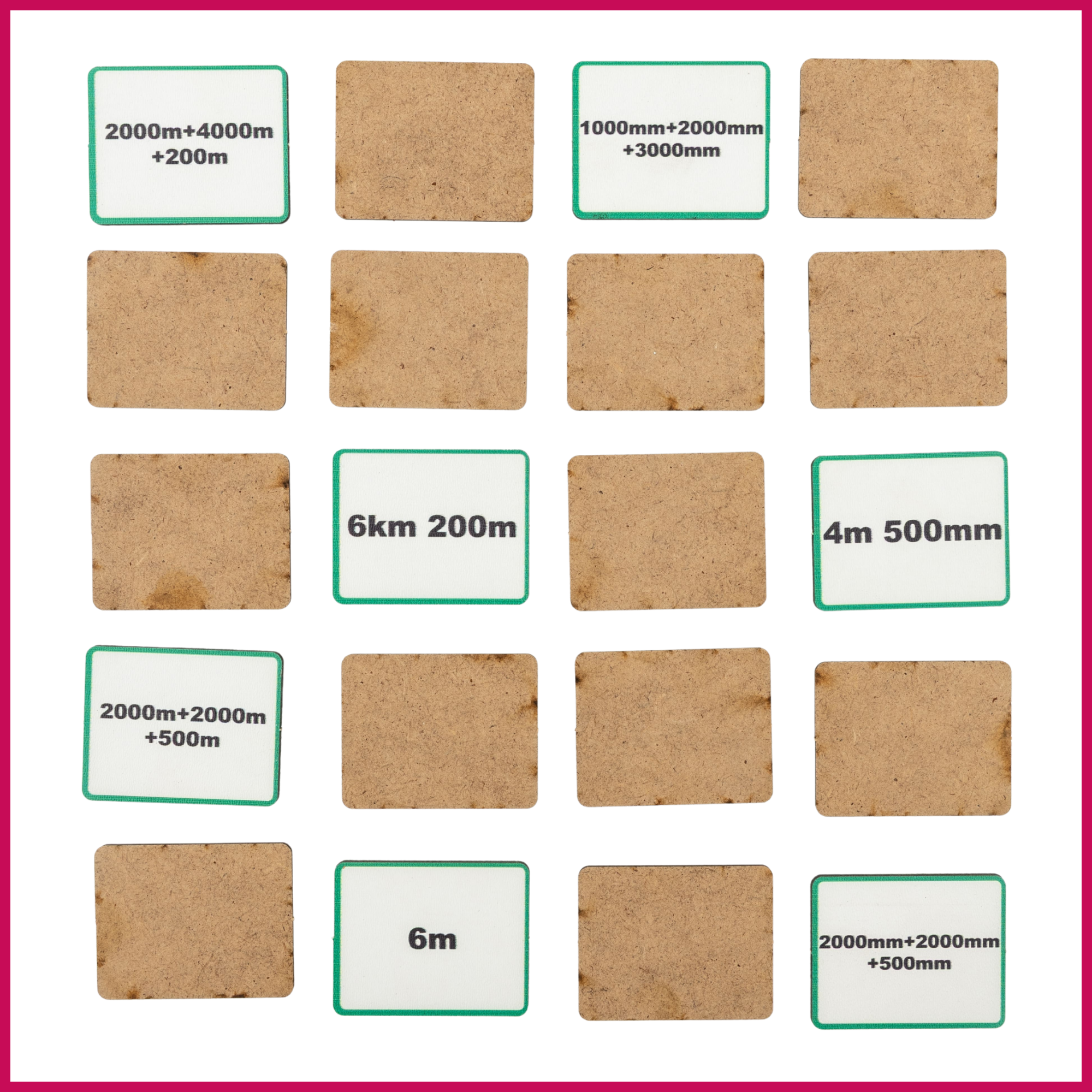 Grupla ve Karıştır: 5 farklı ölçü setinden (uzunluk, ağırlık, hacim vb.) birini seçin. Kartları ters çevirip masaya dizin.
