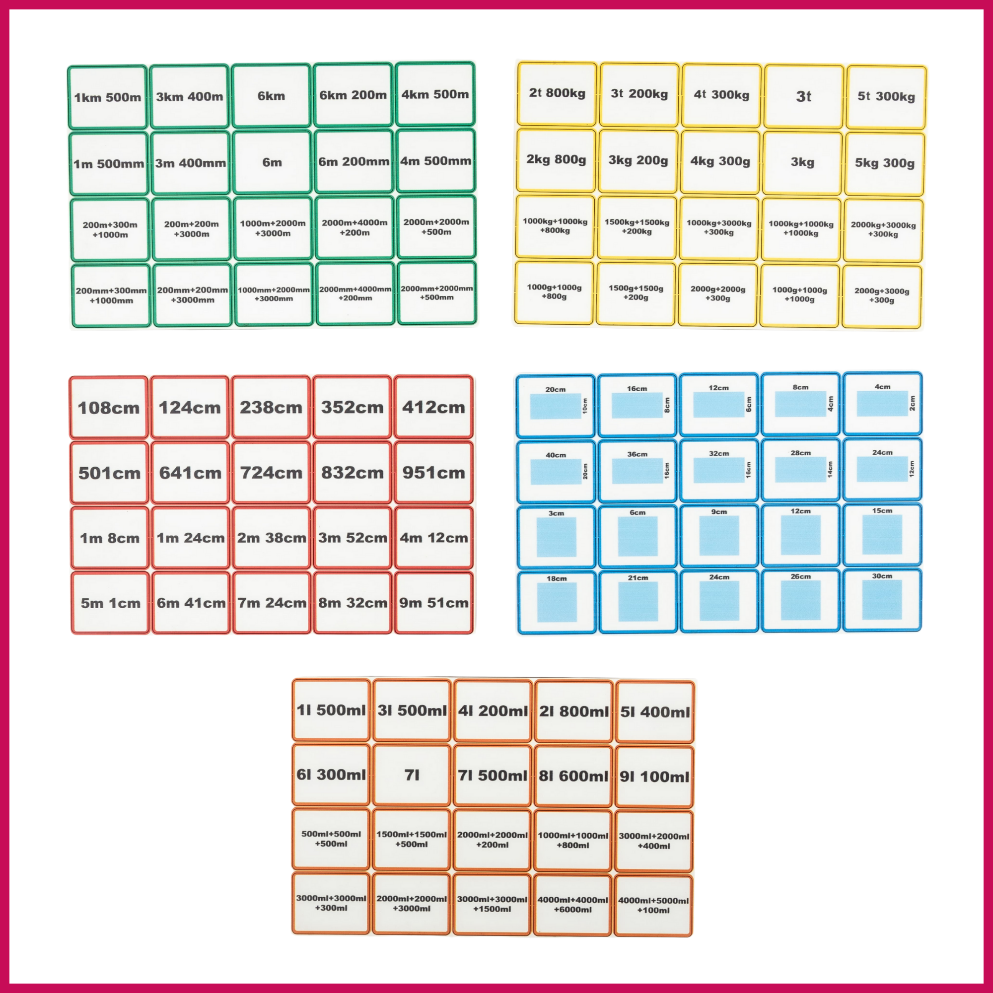 150+ ölçü kartı (5 farklı set, her set 30 kart)