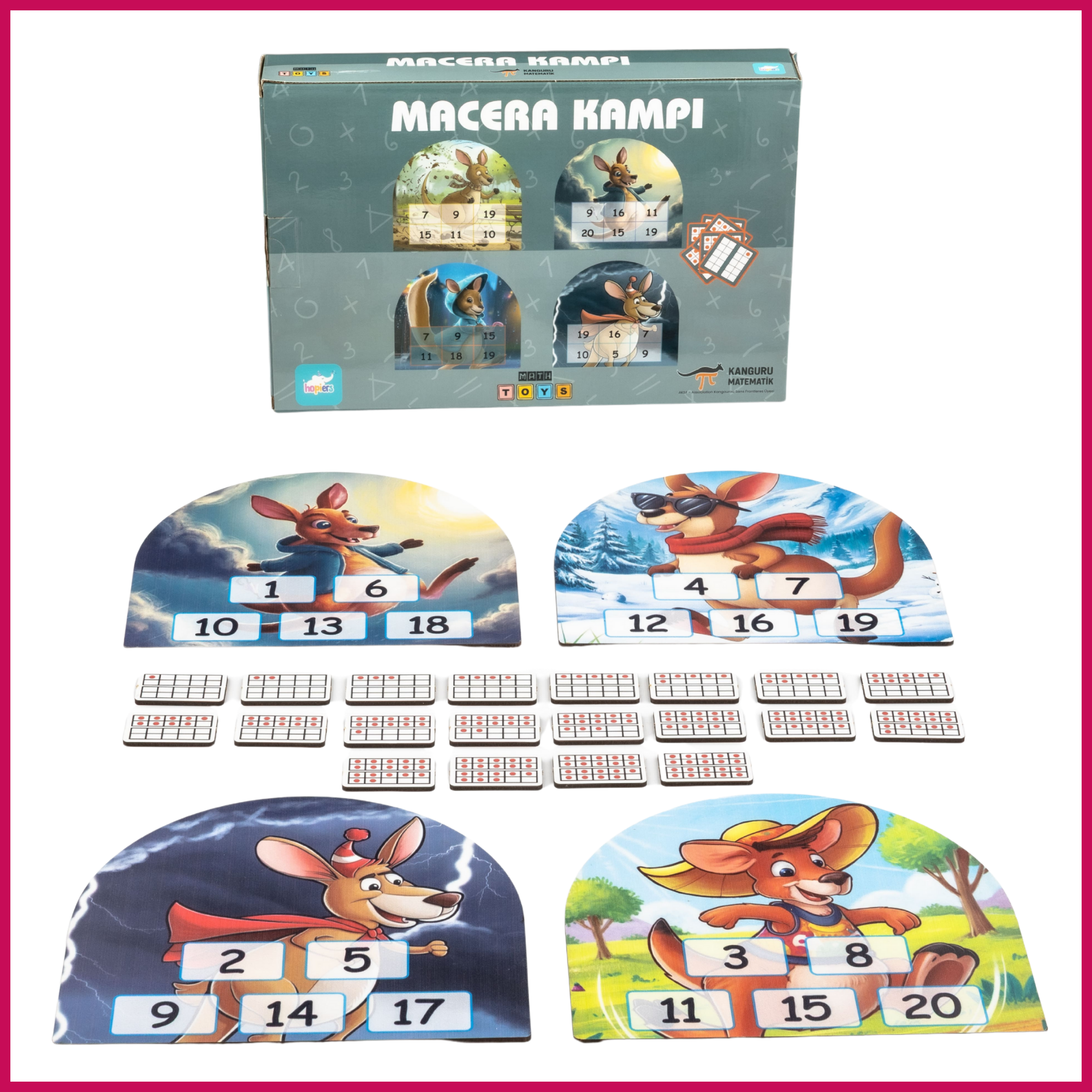 Macera Kampı oyunu, çocukların sayıları tanıma, eşleştirme ve temel matematik becerilerini geliştirmeleri için tasarlanmış eğlenceli bir Hopiers Kanguru Matematik serisi oyunudur. Jumpy ile birlikte kamp otobüsüne binmek için biletleri kapmaya hazır mısınız?