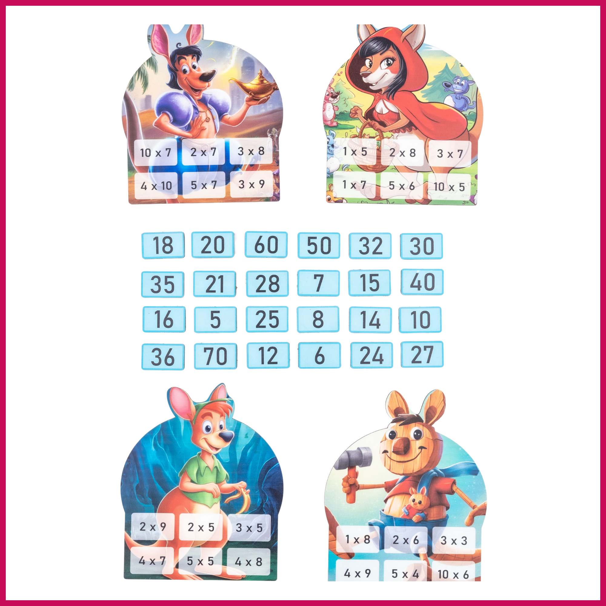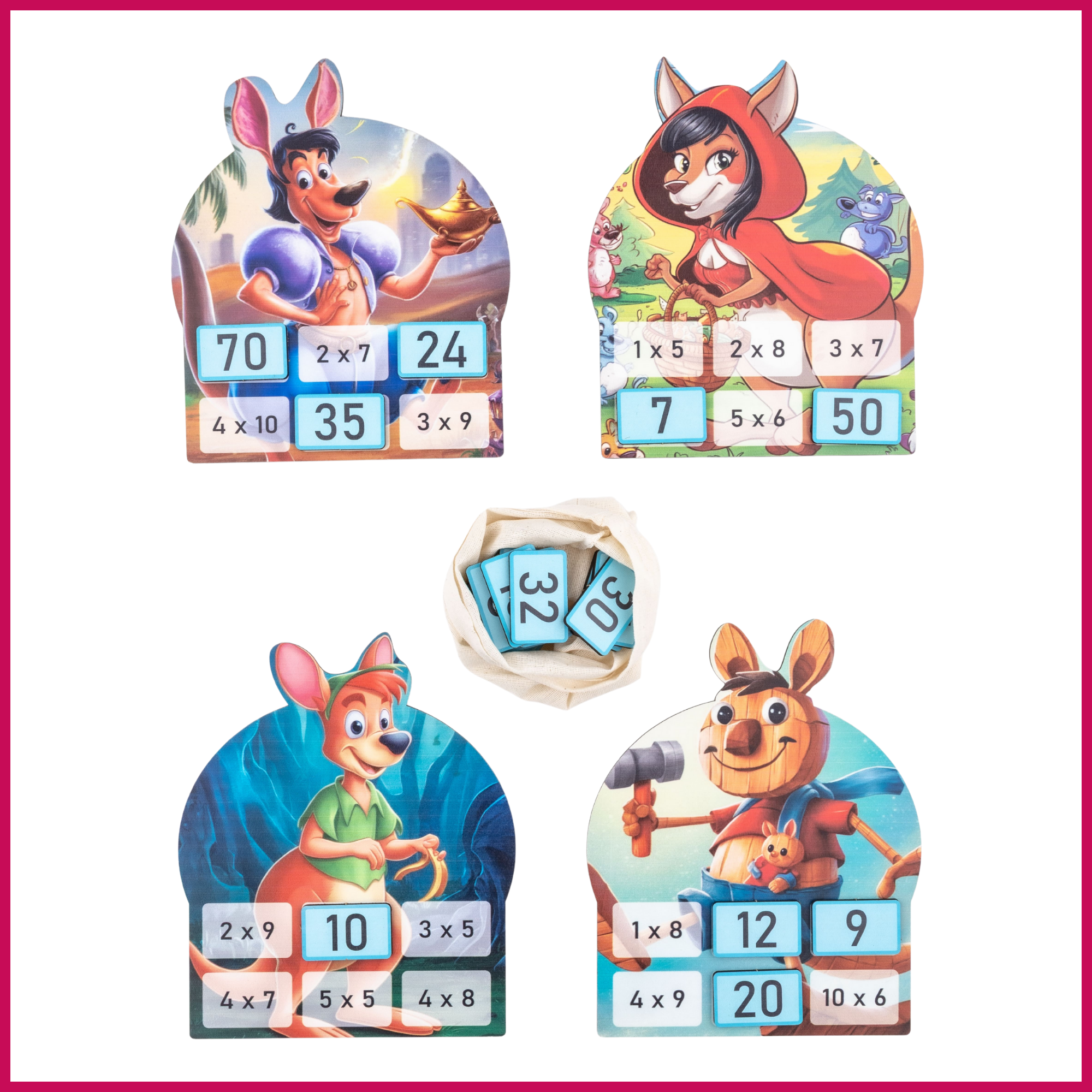 Masal kahramanı ol! Amacınız, keseden çekilen sayıların masal kartınızdaki çarpma işlemlerinin sonucu olup olmadığını hızla bularak tüm işlemleri kapamak ve masal anlatma hakkı kazanmak.