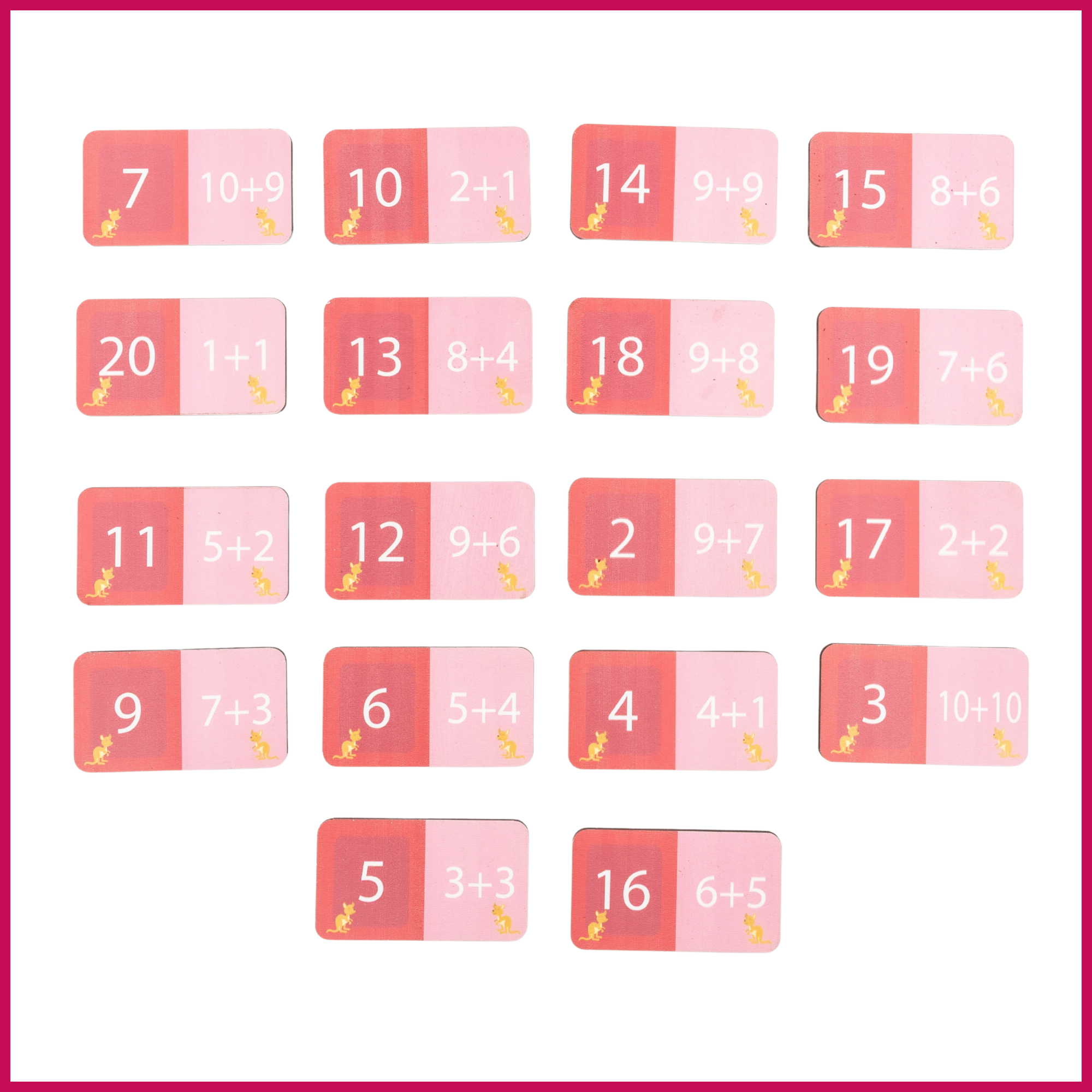 50+ çift taraflı kart (bir yüzü sayı, diğer yüzü toplama işlemi)