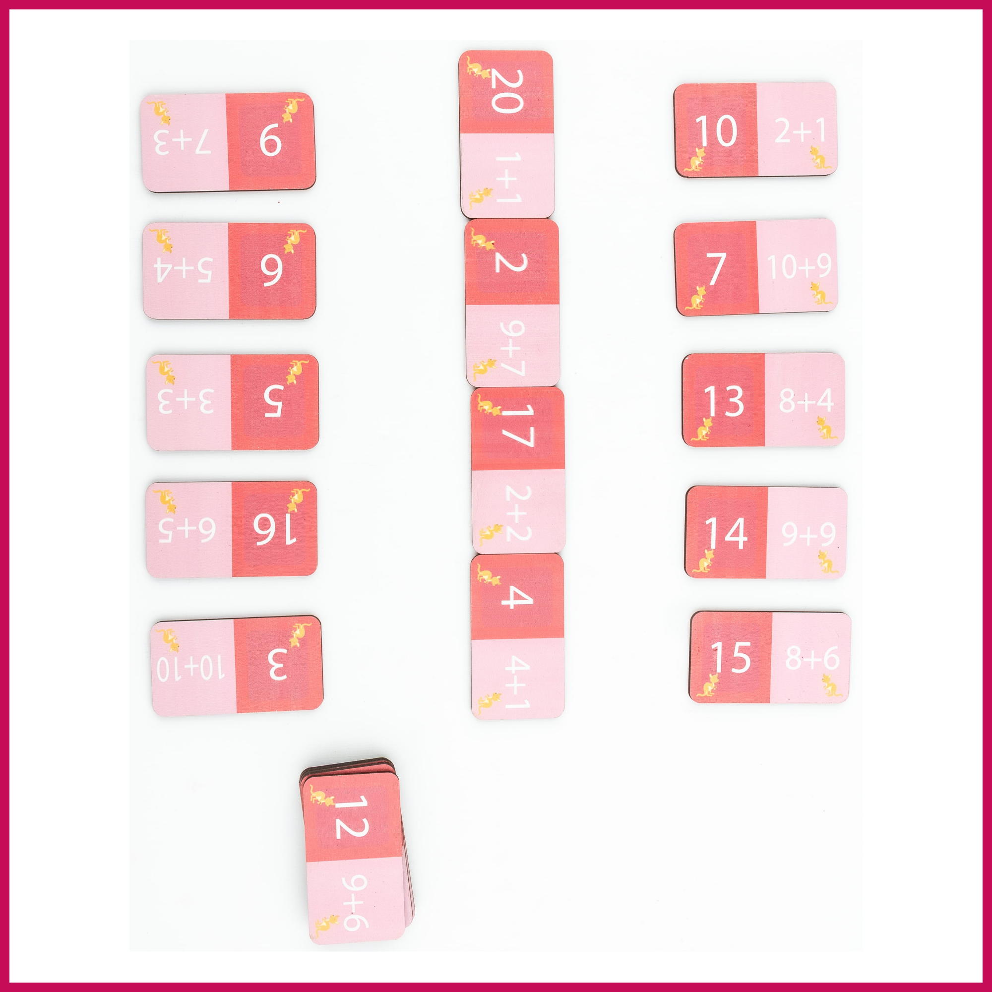 Başlayan oyuncu, elindeki eşleşen kartı (Örn: "11" ↔️ "5+6") yere dik olarak yerleştirir.