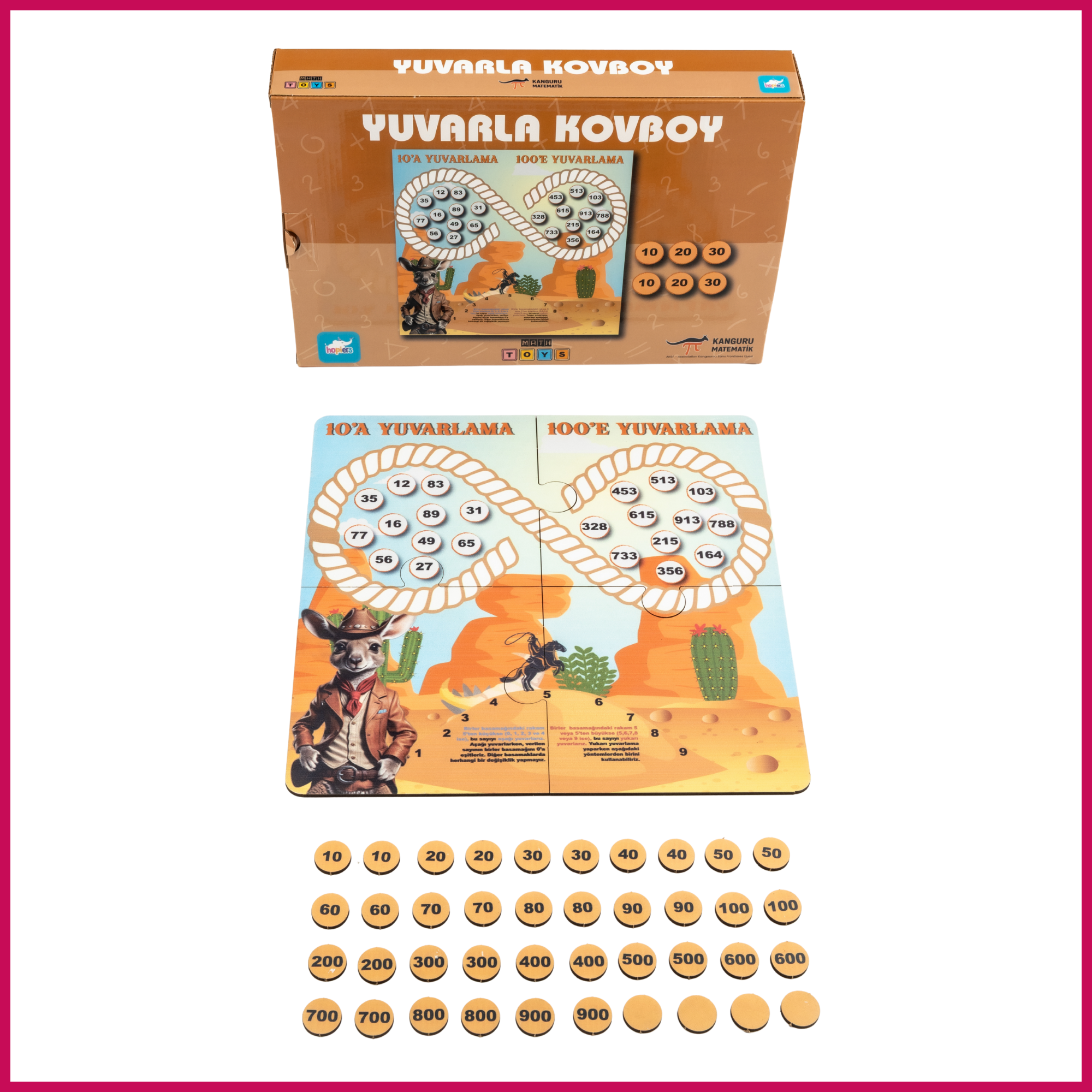 Kanguru Matematik Yuvarla Kovboy | | 10’a ve 100’e Yuvarlama Öğreten Eğitici Oyun | 7-10 Yaş | 2-4 Oyuncu | İlkokul Müfredatına Uyumlu