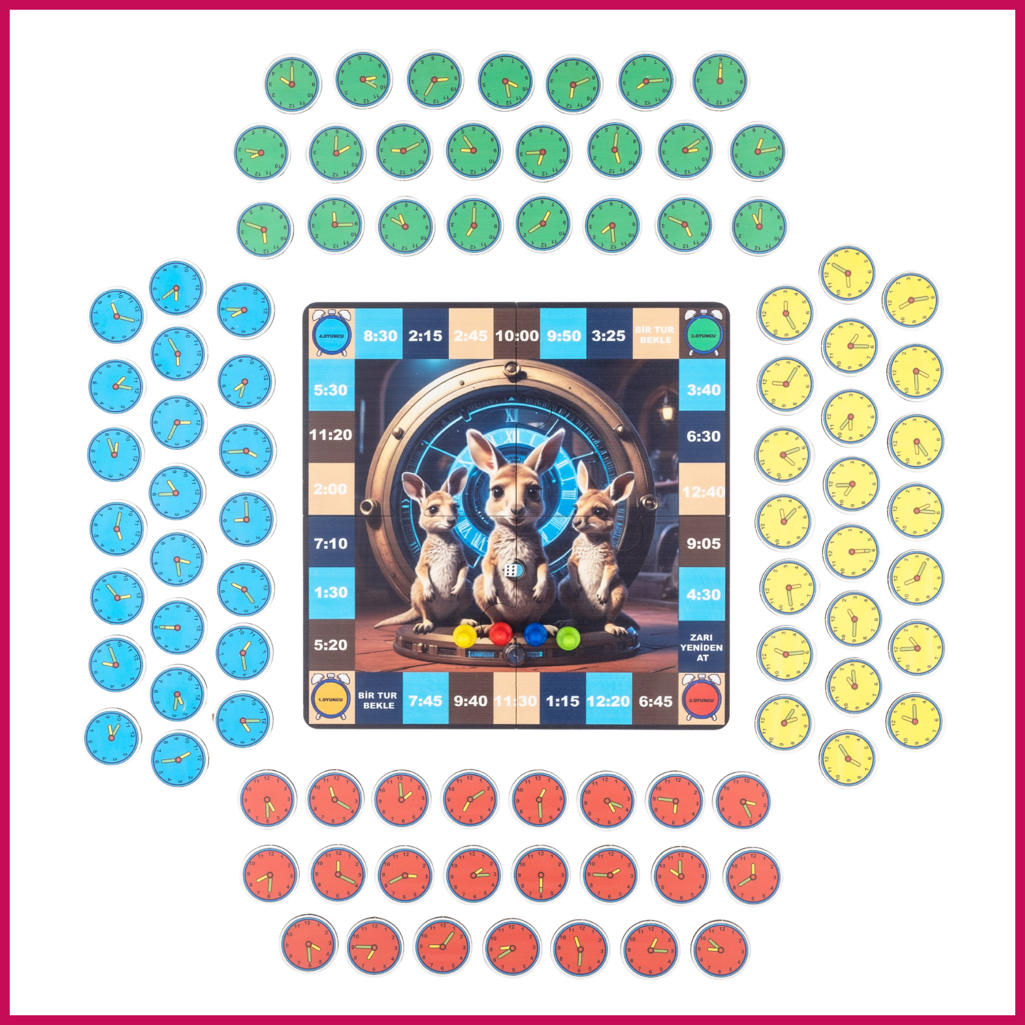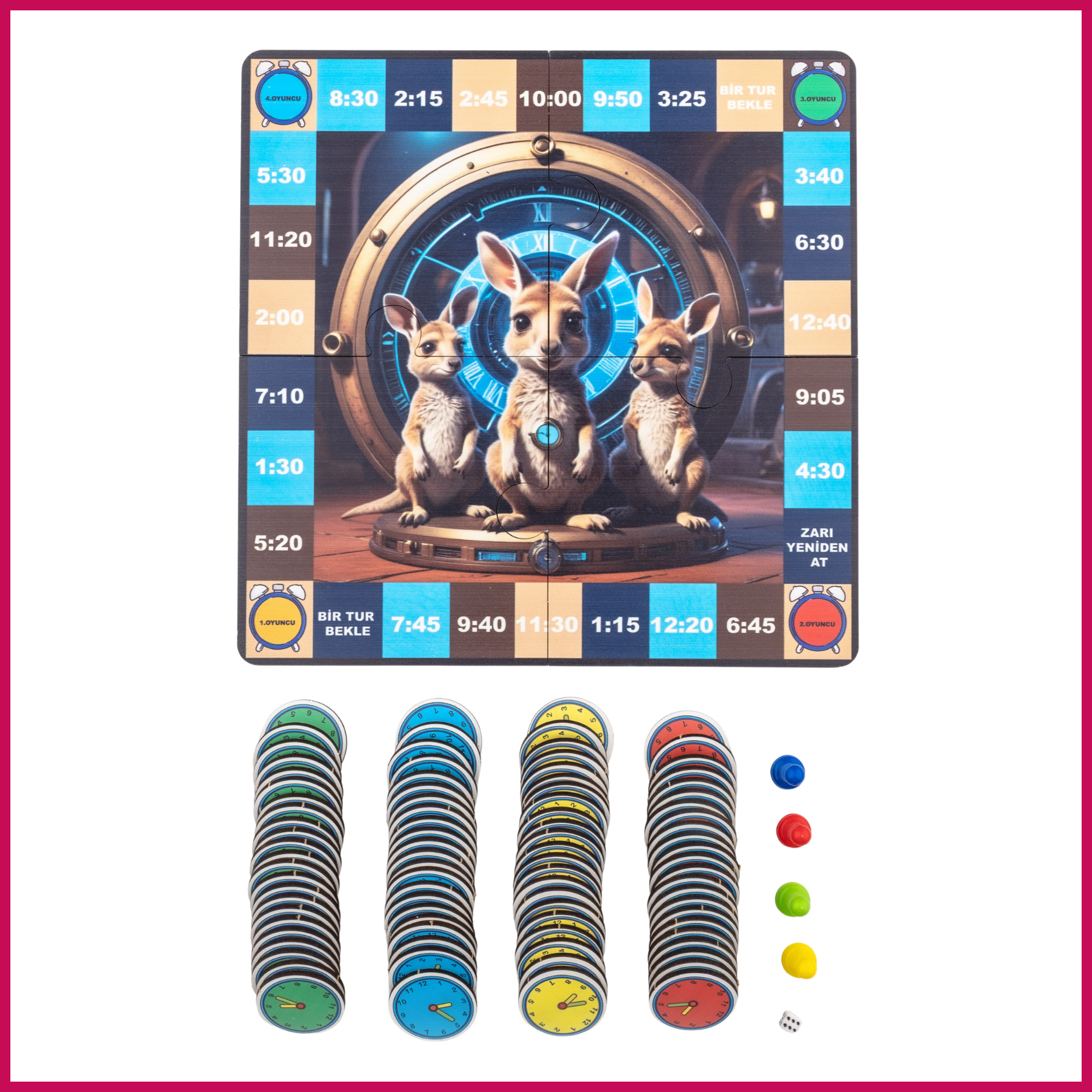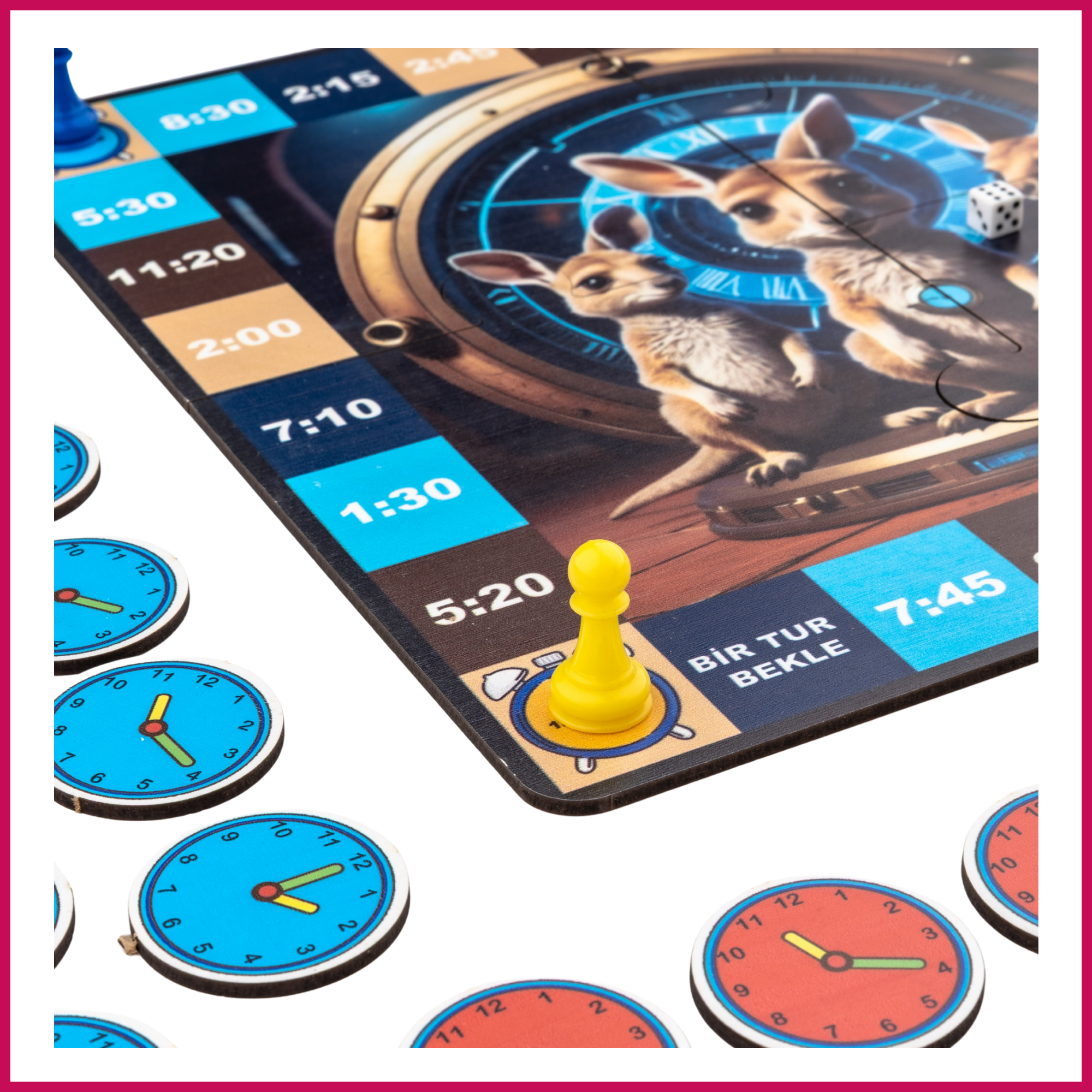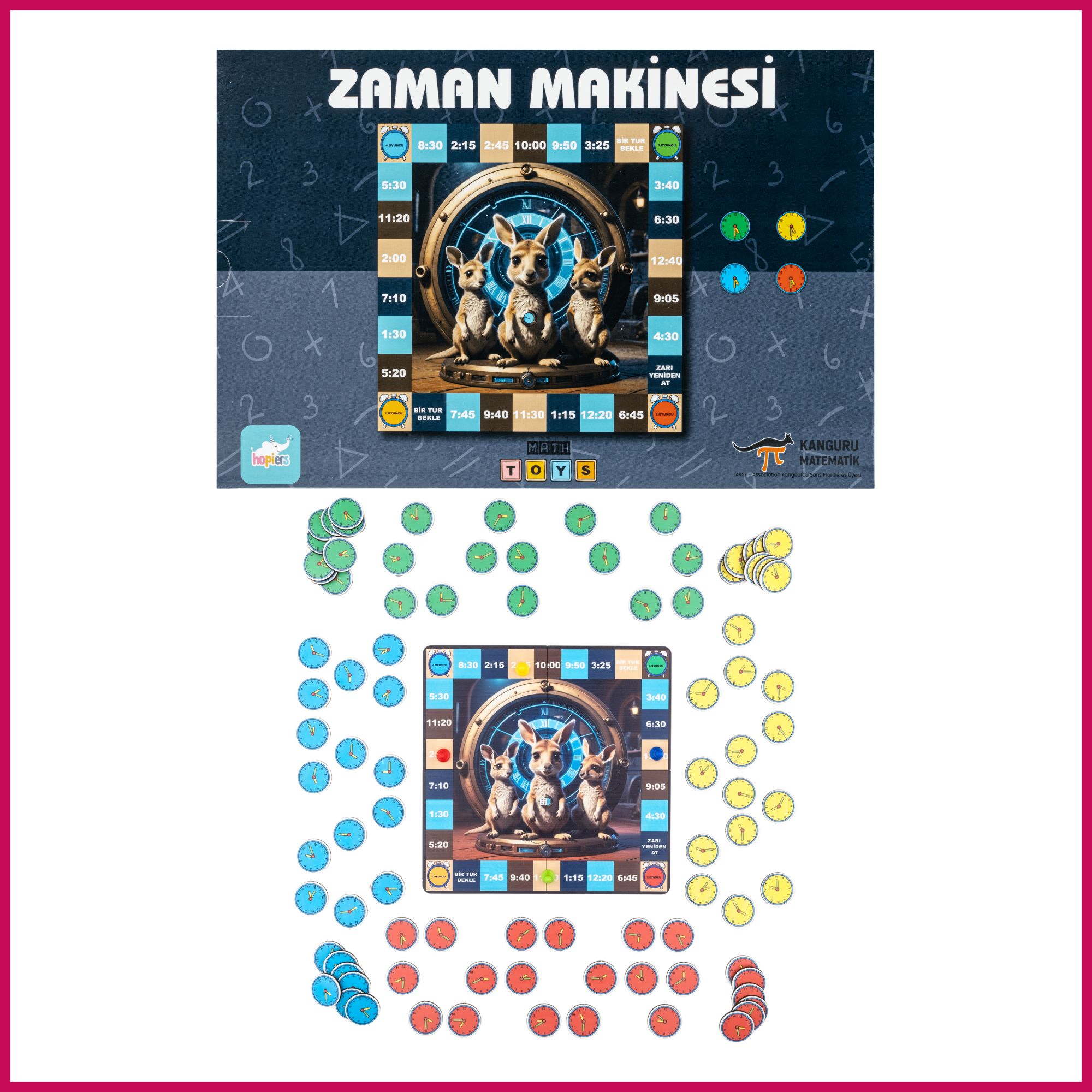 Zaman Makinesi oyunu, çocukların analog saat okumayı eğlenceli bir macerayla öğrenmesi için tasarlanmıştır. Uzaylı bilim kangurularının icadıyla zamanda yolculuğa çıkan çocuklar, saatleri öğrenirken heyecan dolu bir yarış yaşıyor!