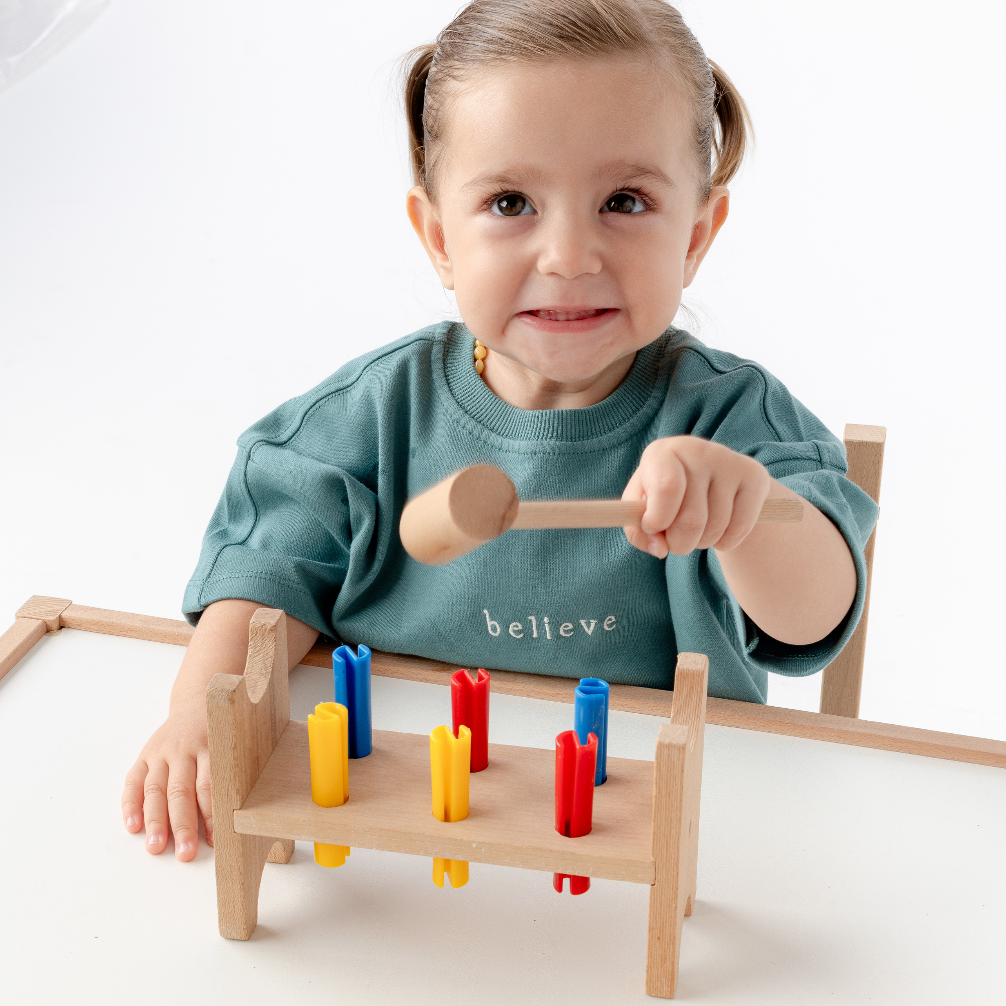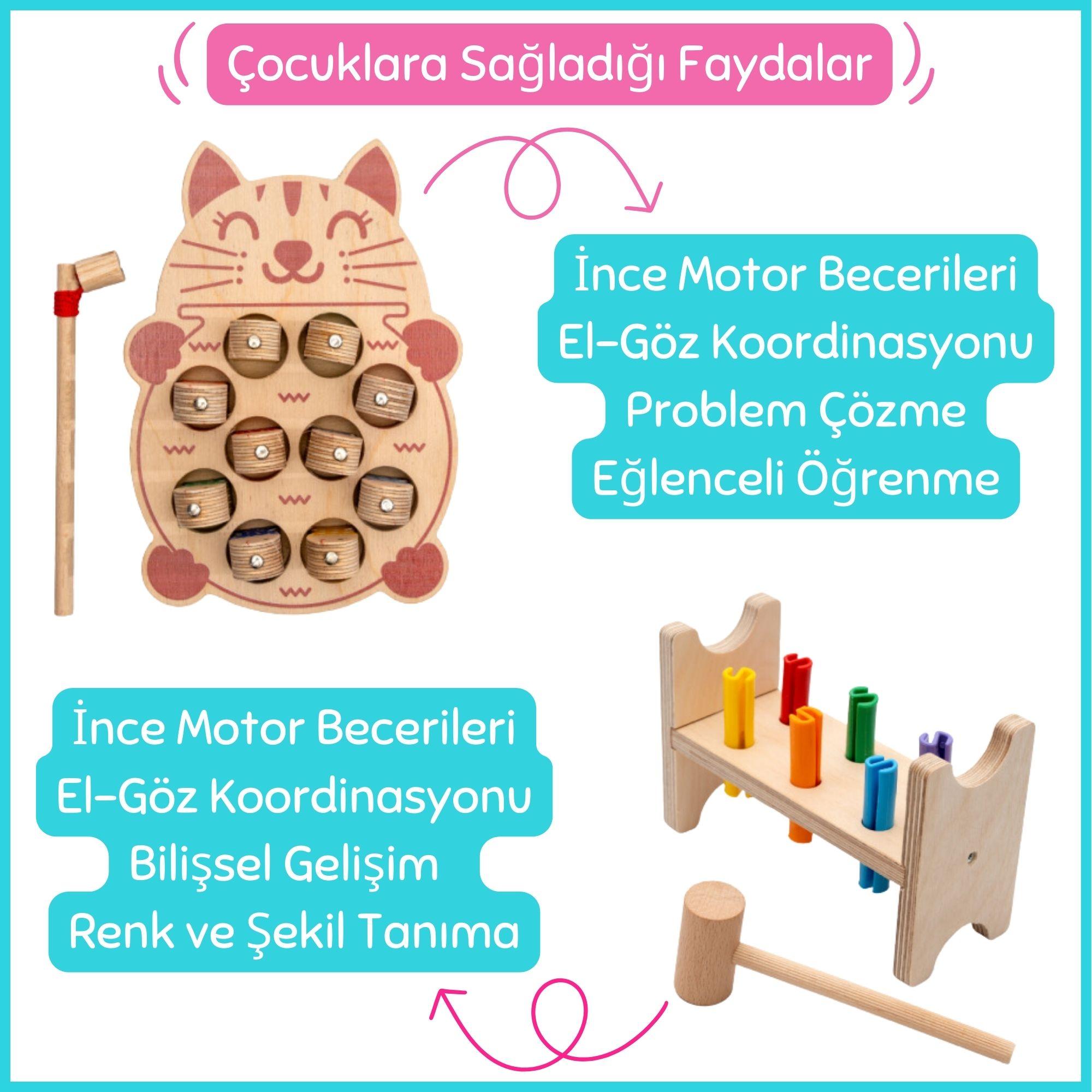 Motor Becerilerini Geliştirme: Çocuğunuzun, çekiçle ahşap blokları hedefe vurarak motor becerilerini geliştirmesine yardımcı olun. Bu, el-göz koordinasyonu ve kas gelişimini destekler.