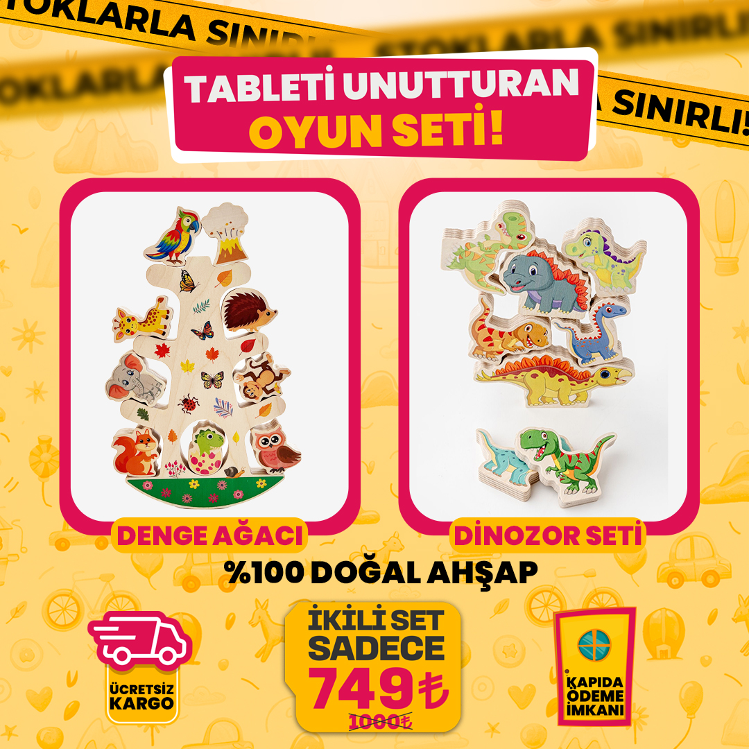 Ahşap Dinozor Figür Seti ise oyunu yalnızca dengeyle sınırlı bırakmaz. Dinozorlar; rol yapma, hikâye kurma ve sembolik oyun süreçlerini destekleyerek hayal gücünü devreye sokar. Denge ağacıyla birlikte kullanıldığında oyuna yeni senaryolar eklenir; tek başına kullanıldığında ise bağımsız bir oyun alanı sunar.