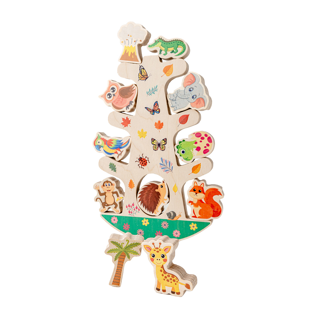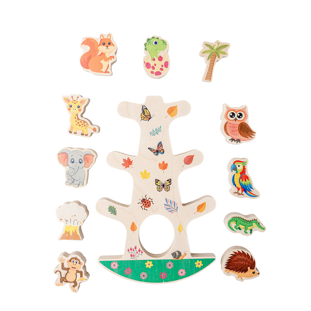 Montessori Ahşap Denge Ağacı; denge kurma, dikkat toplama ve el–göz koordinasyonu gibi temel becerileri oyun yoluyla destekler. Parçalar her yerleştirildiğinde farklı bir denge ihtiyacı ortaya çıkar. Bu da çocuğun problem çözme, sabır ve odaklanma becerilerini doğal bir süreç içinde geliştirmesine yardımcı olur.
