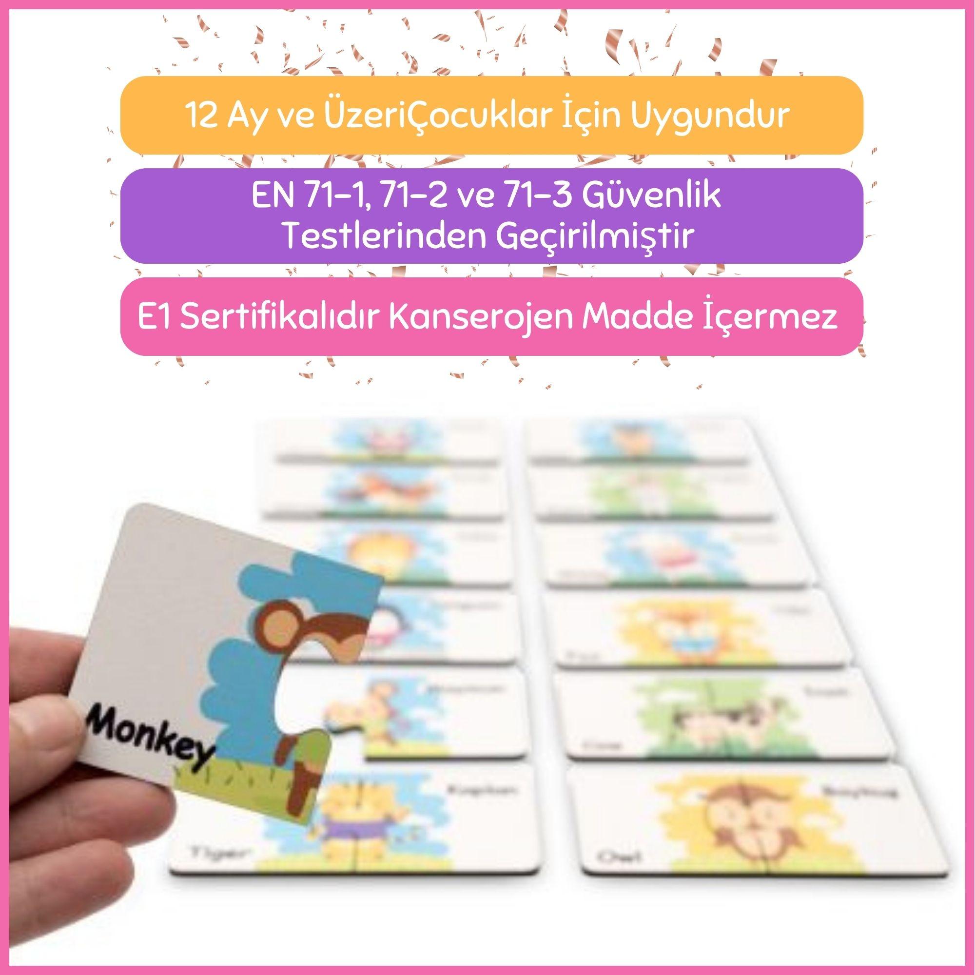 Parça Sayısı: Set içerisinde çeşitli hayvan, nesne veya şekil temalı 20 çift (40 adet) eşleştirme kartı bulunmaktadır.