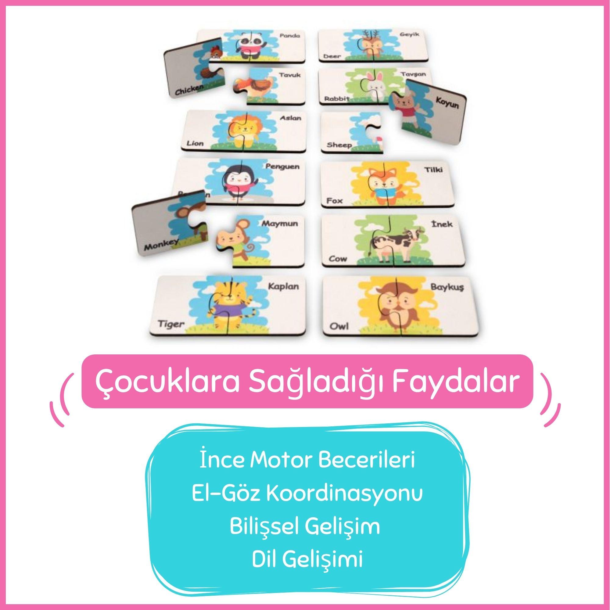 Dil Gelişimi: Türkçe ve İngilizce hayvan isimleri sayesinde çift dilde öğrenim imkanı sunar.