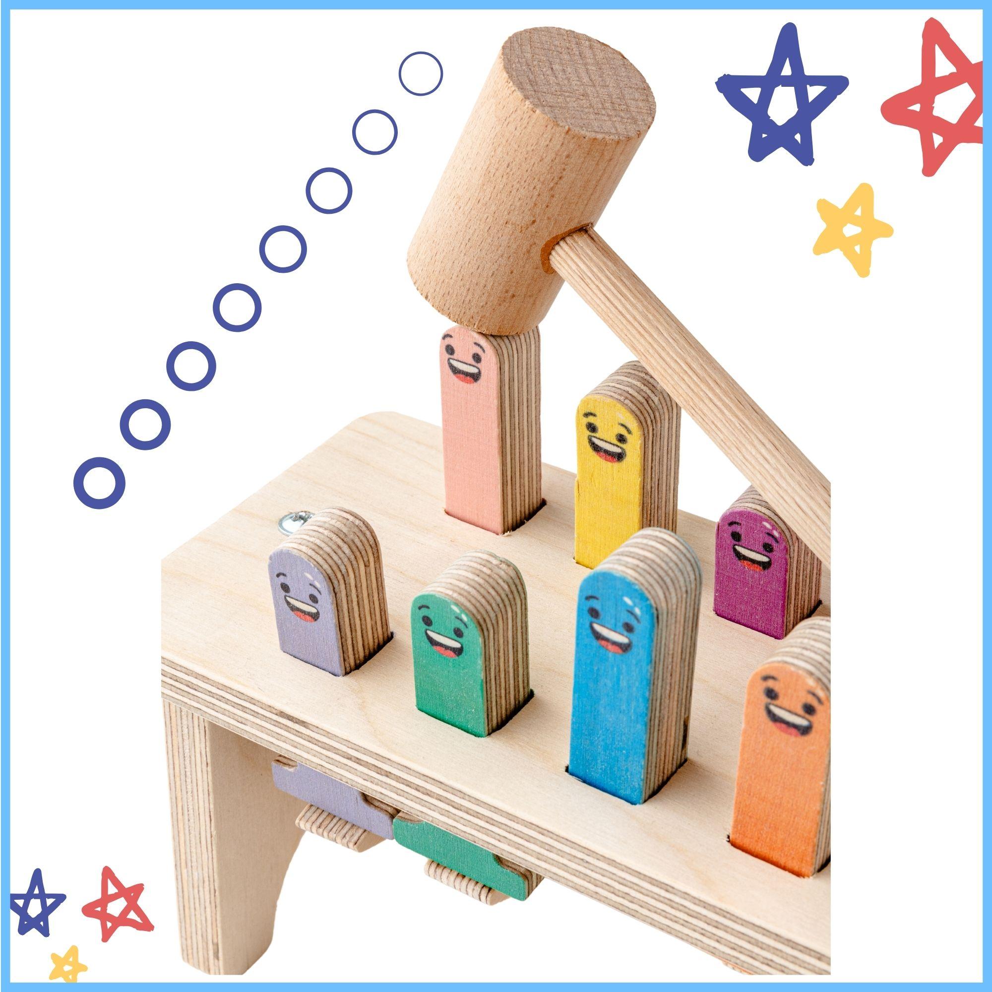 İnce Motor Becerileri: Çekiçle vuruş hareketi sayesinde çocukların kas gelişimi desteklenir.
