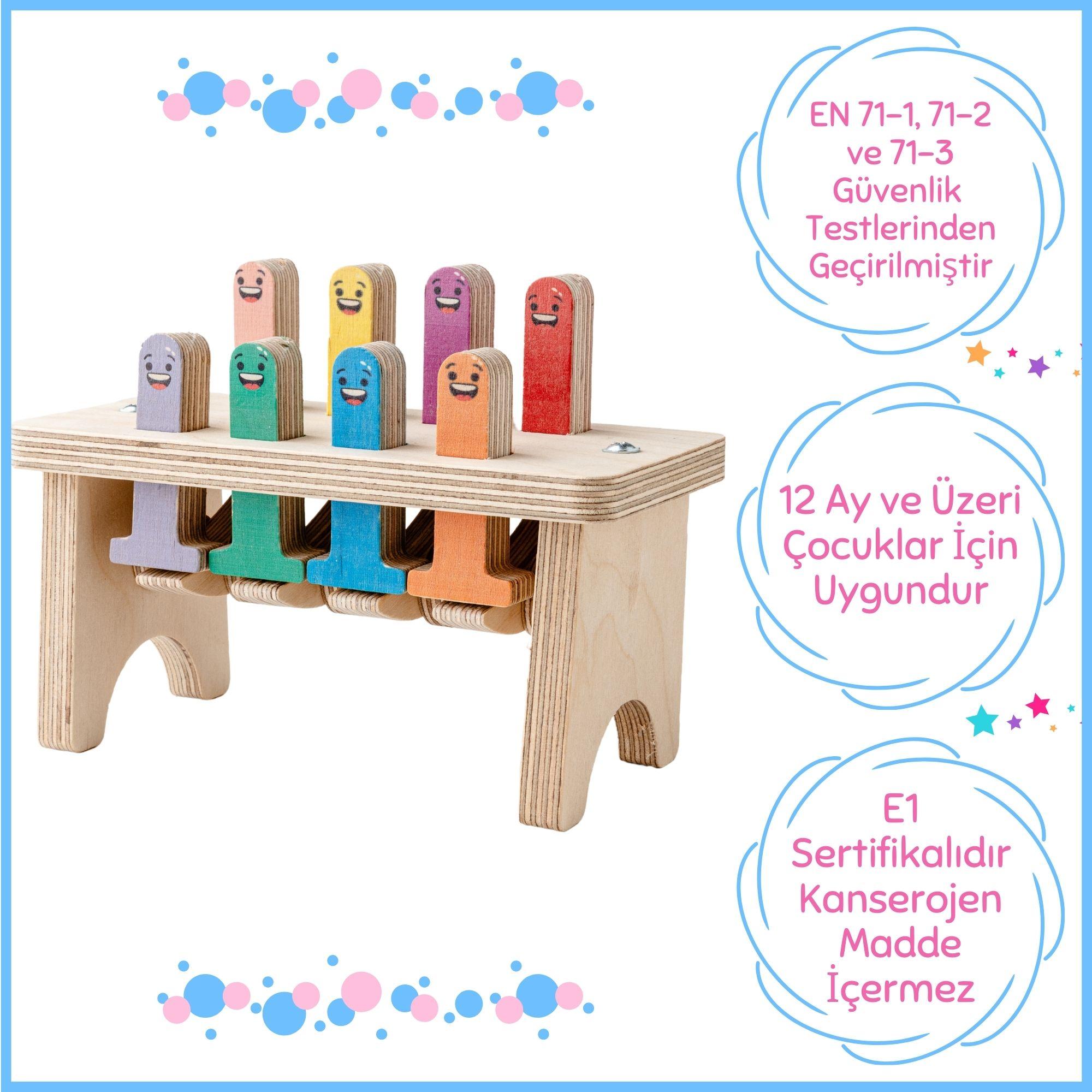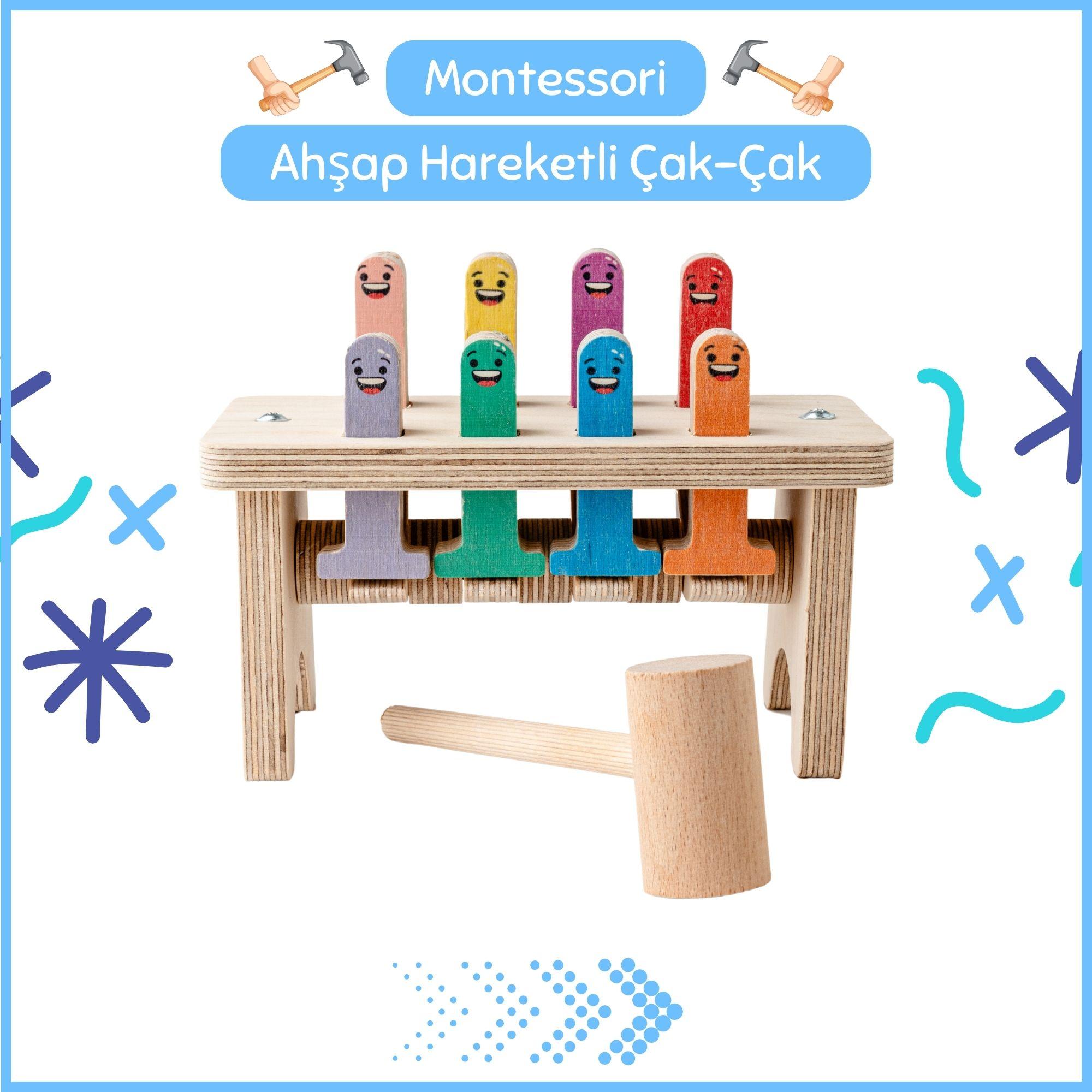 Hopiers Montessori Ahşap Hareketli Çak-Çak Oyunu / 1+ Yaş / Montessori Eğitici ve Öğretici Renkli Ahşap Oyuncak / Güvenli ve Eğlenceli Çocuk Oyuncağı