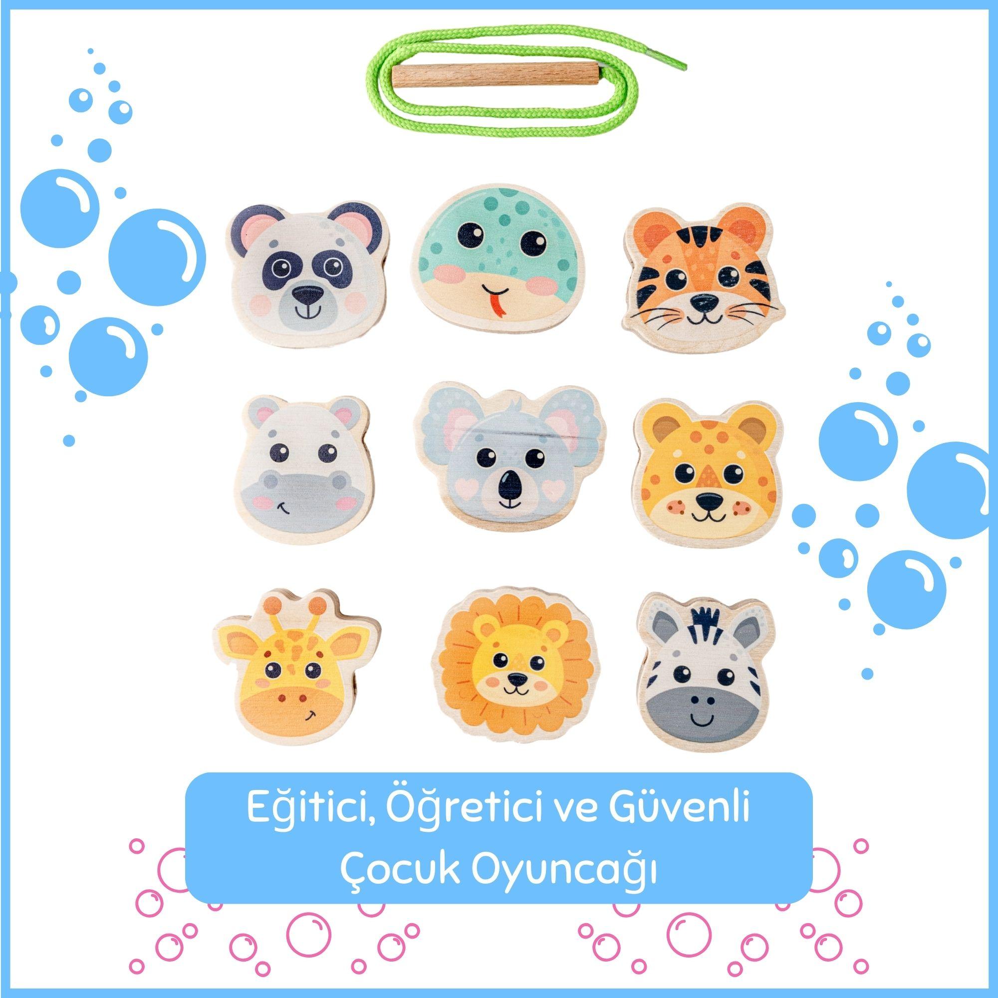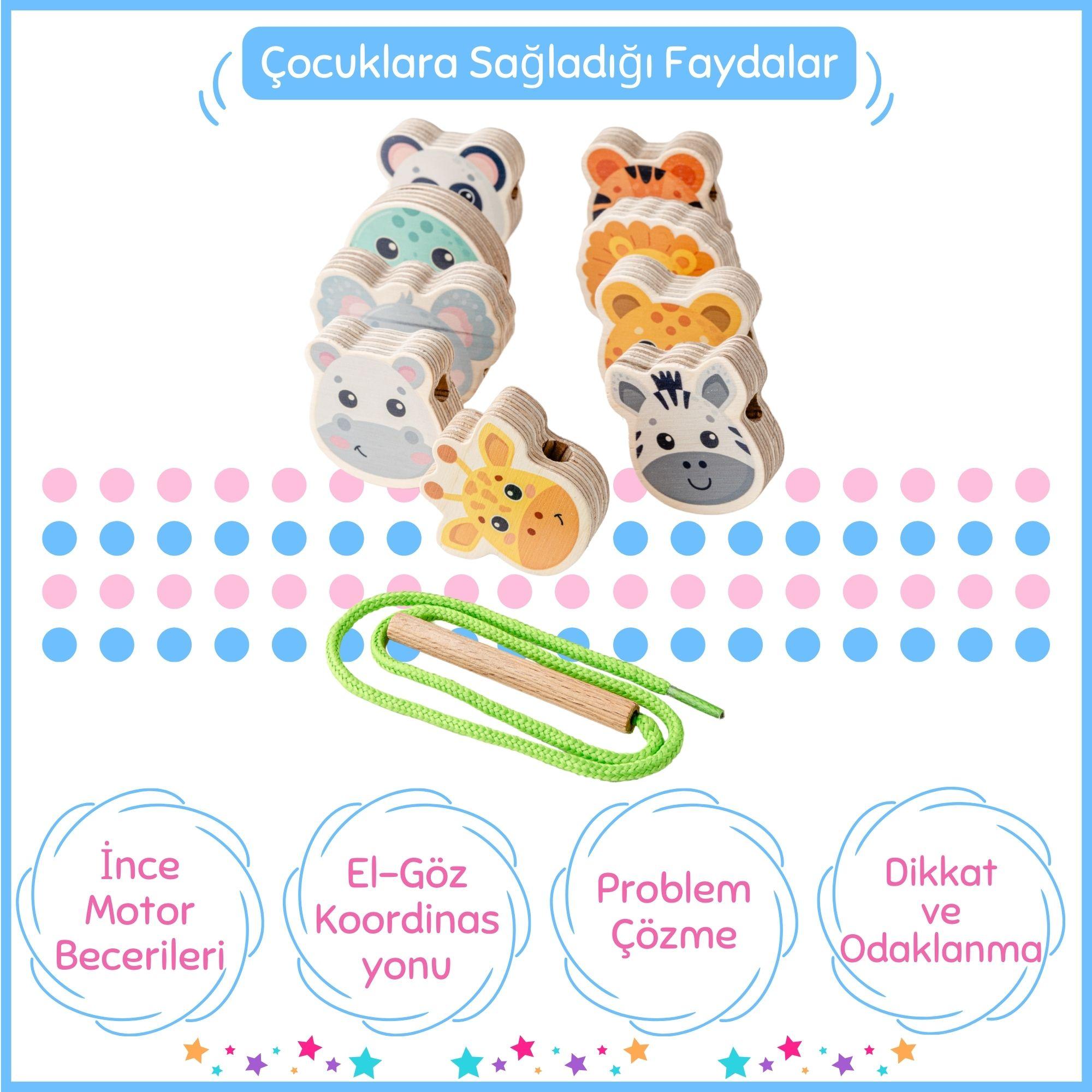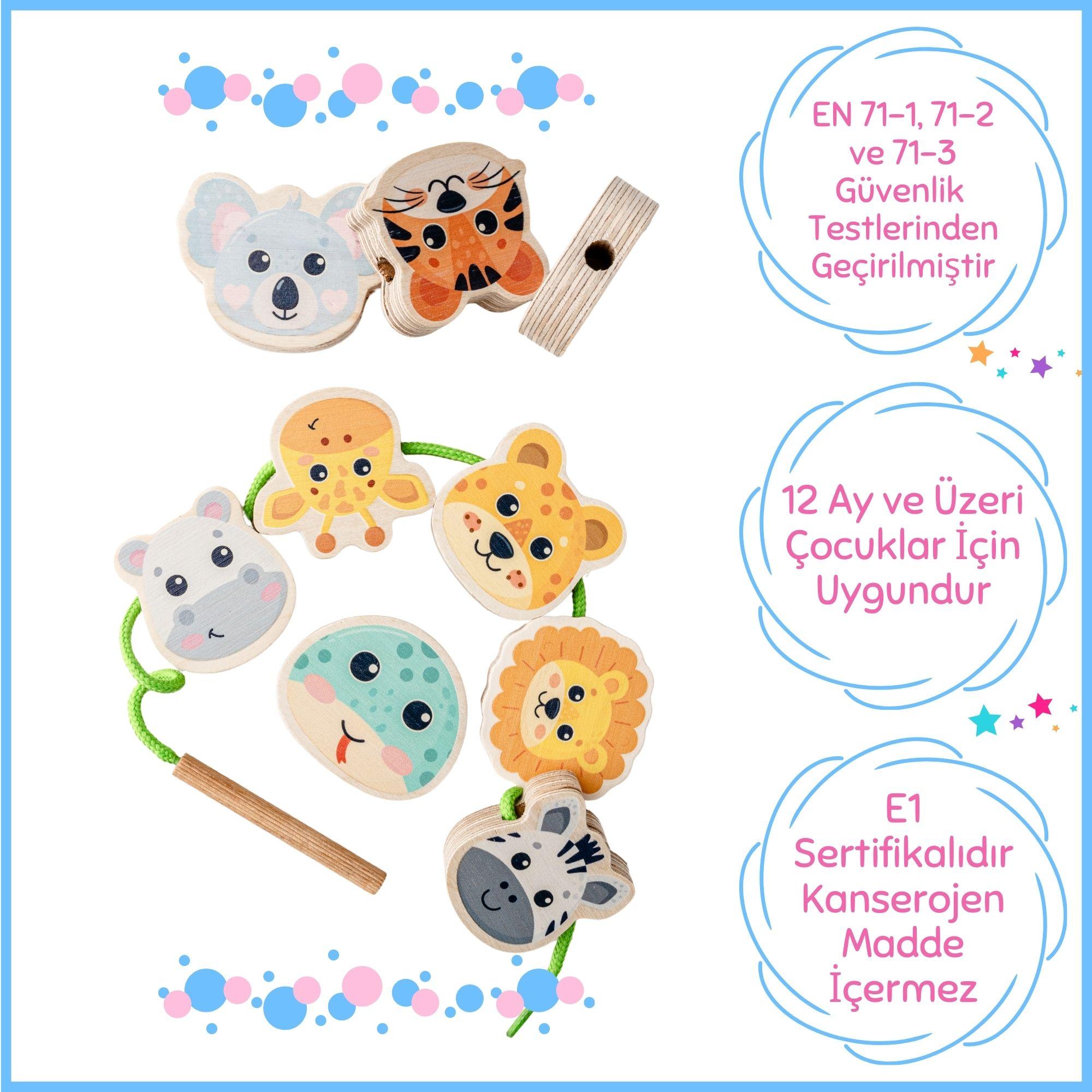 Hopiers Montessori Ahşap Hayvan Figürleri İpe Dizme Oyunu / 1+ Yaş / Montessori Eğitici ve Öğretici Renkli İpe Dizme Oyuncağı / Güvenli ve Eğlenceli Çocuk Oyuncağı