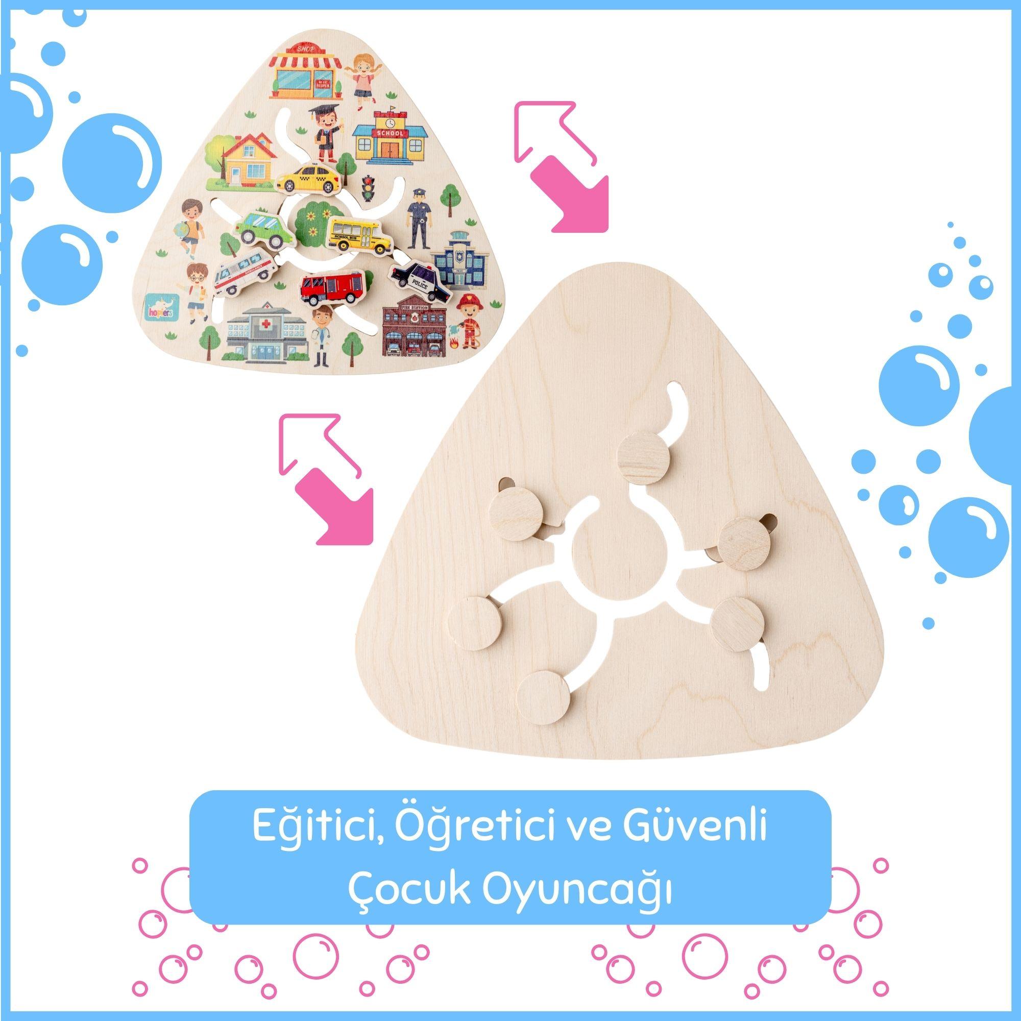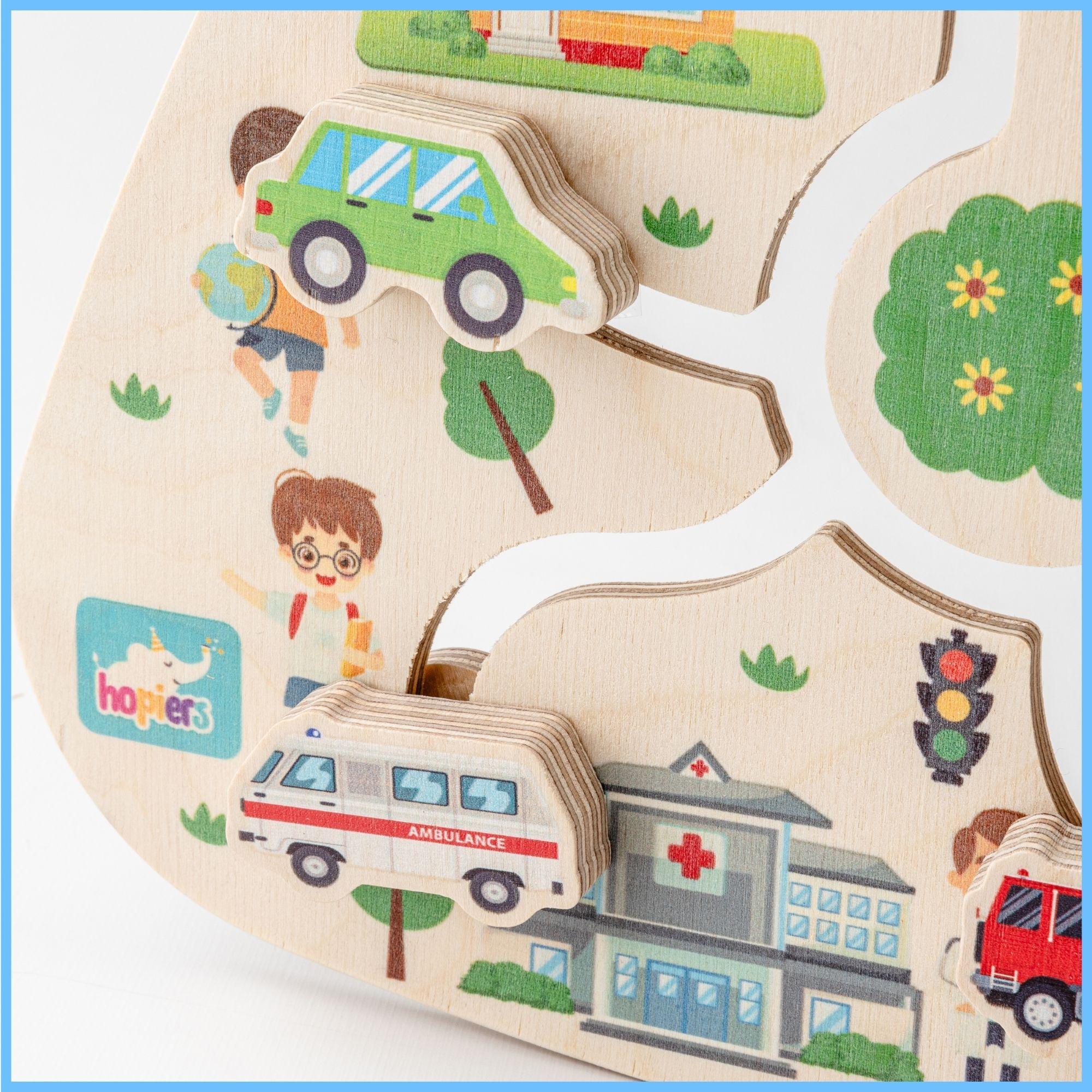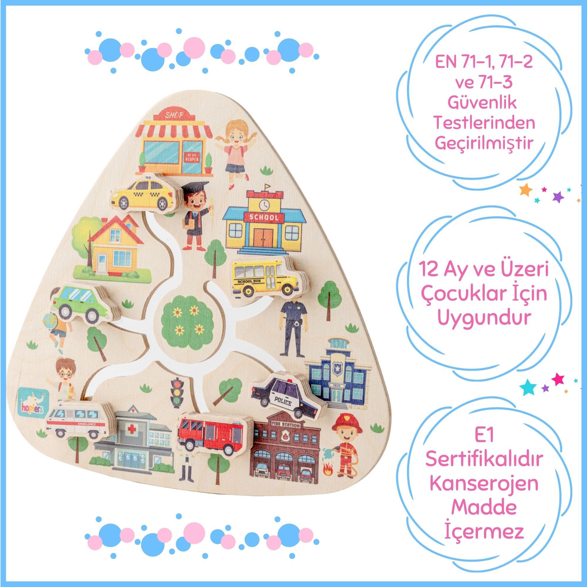 Hopiers Ahşap Koordinasyon Yolu / Eğitici Trafik ve Meslekler Oyunu / Dikkat ve Motor Becerileri Geliştirici Ahşap Oyuncak
