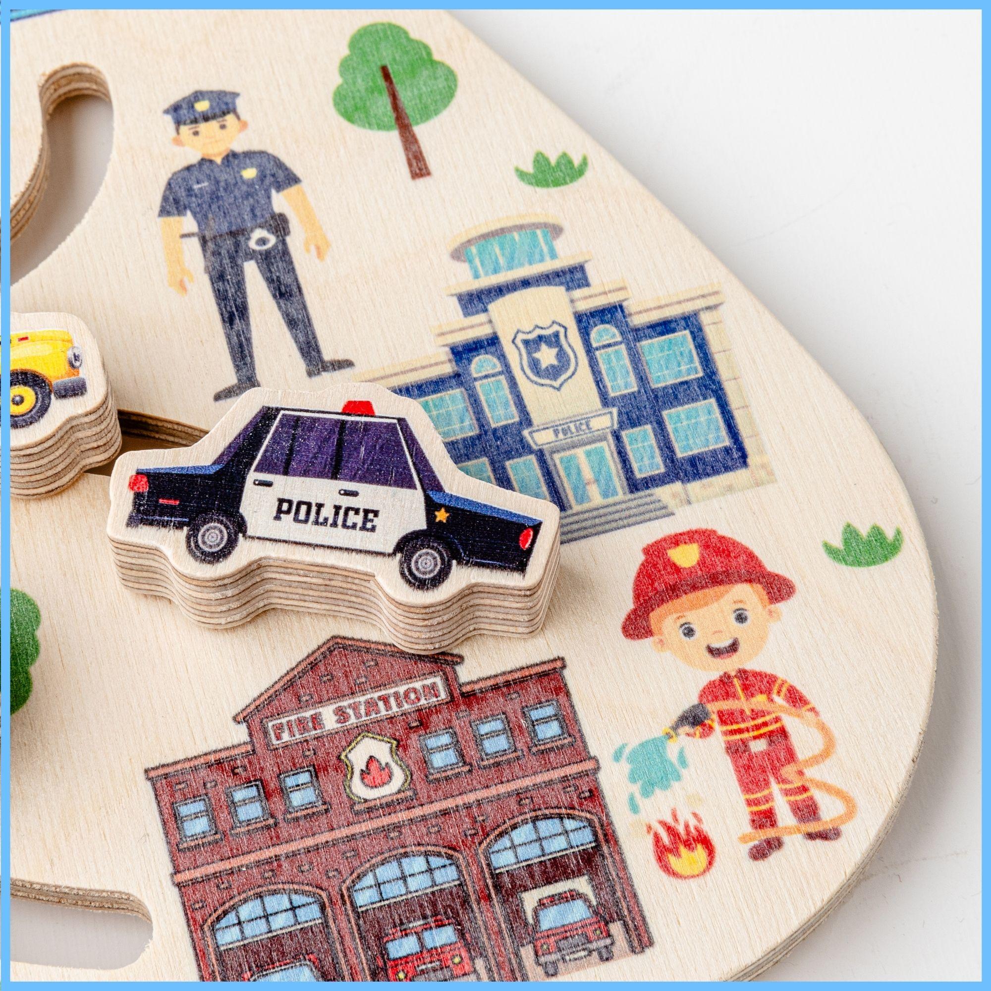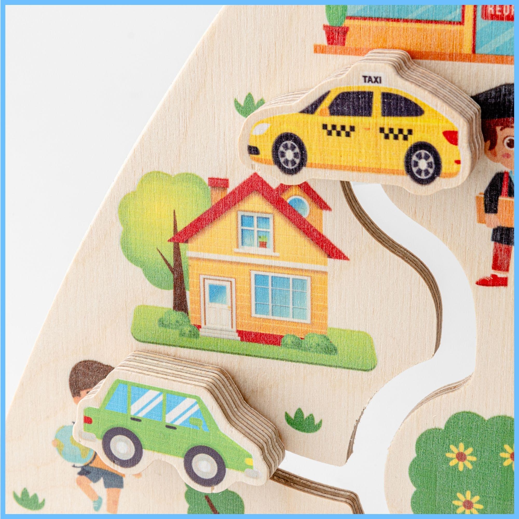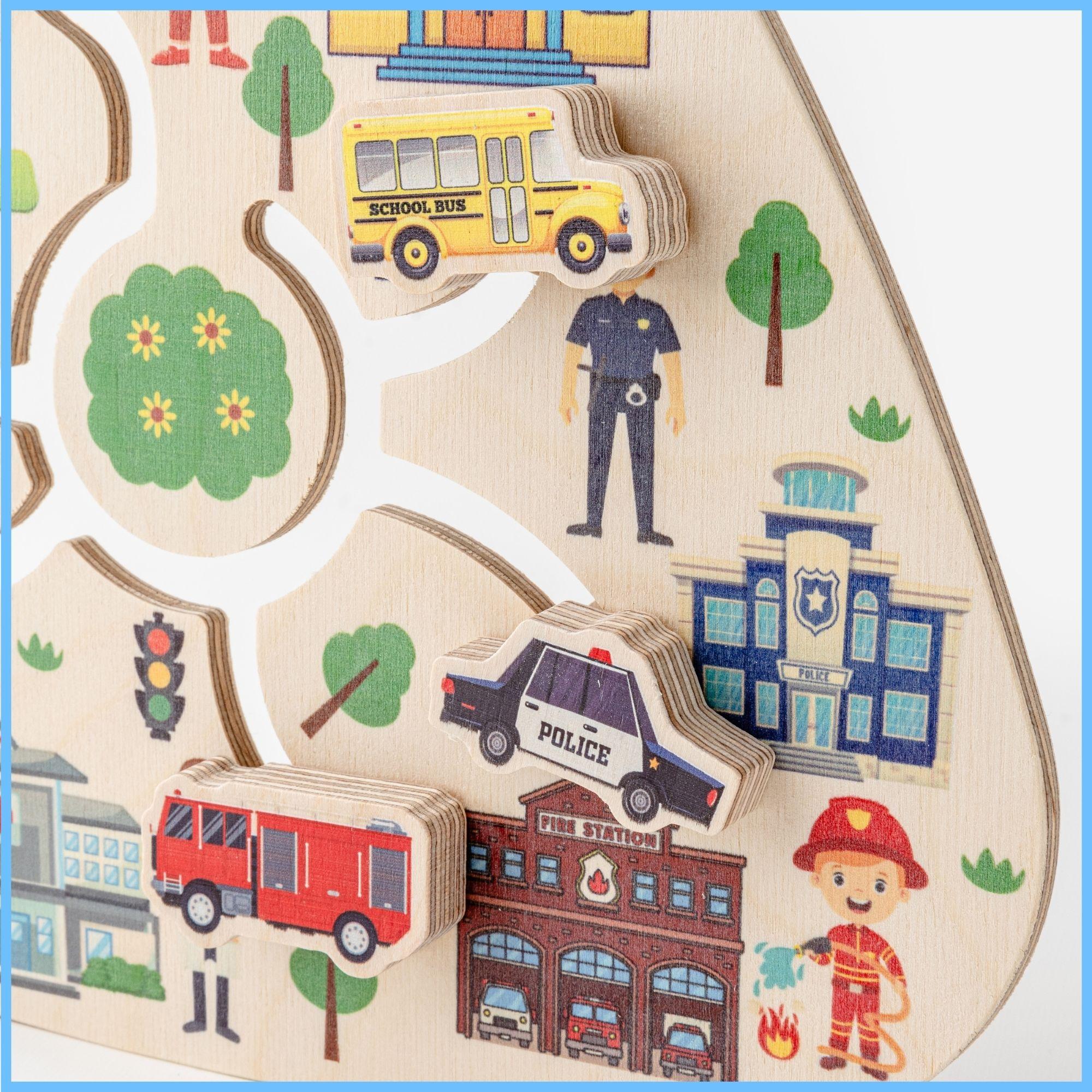 Hopiers Ahşap Koordinasyon Yolu / Eğitici Trafik ve Meslekler Oyunu / Dikkat ve Motor Becerileri Geliştirici Ahşap Oyuncak