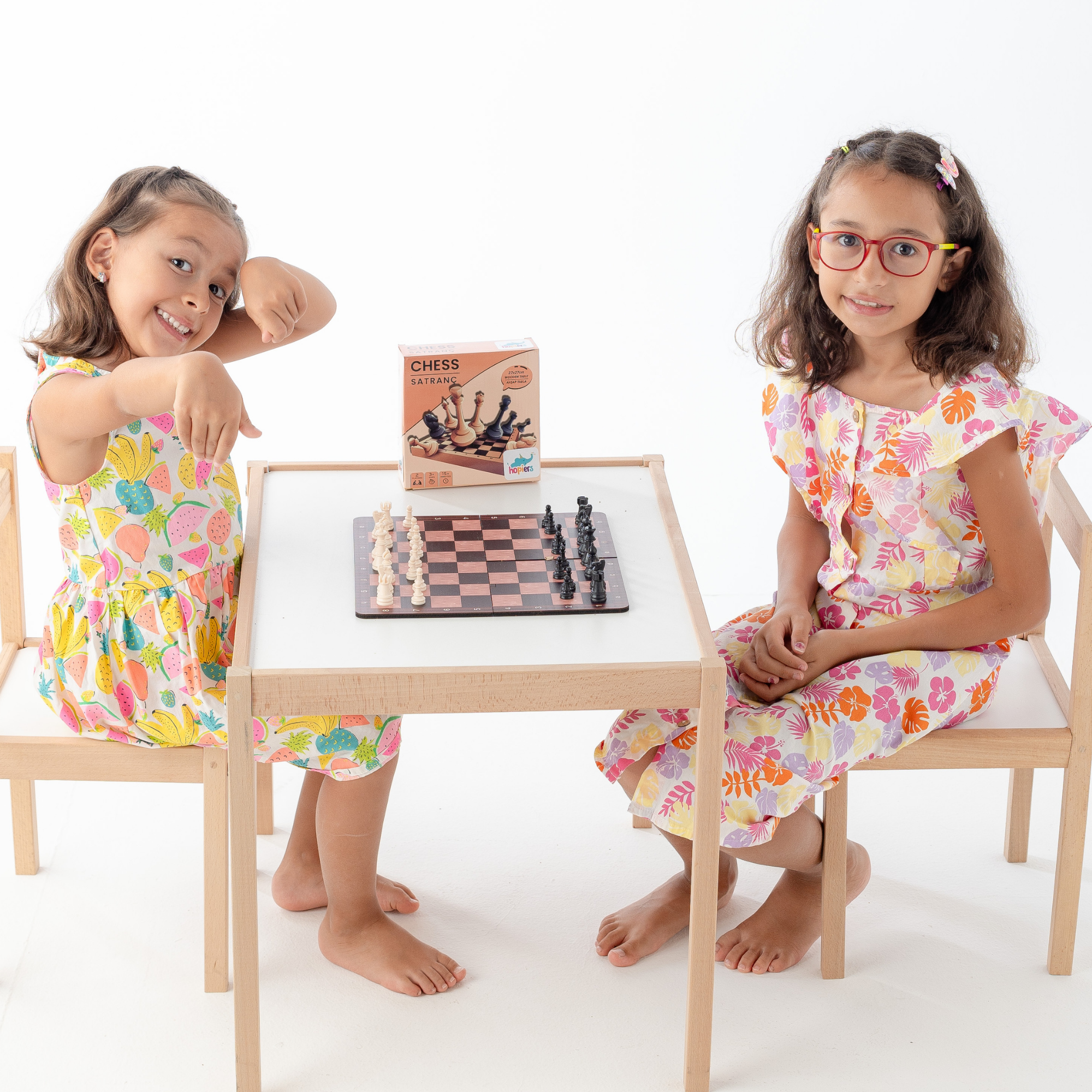 Tasarım: Klasik satranç oyunu için özenle tasarlanmış olup, hem taşlar hem de oyun tahtası doğal ahşaptan yapılmıştır. Pürüzsüz yüzeyler ve yuvarlatılmış kenarlarla çocuklar ve yetişkinler için güvenli bir kullanım sunar.