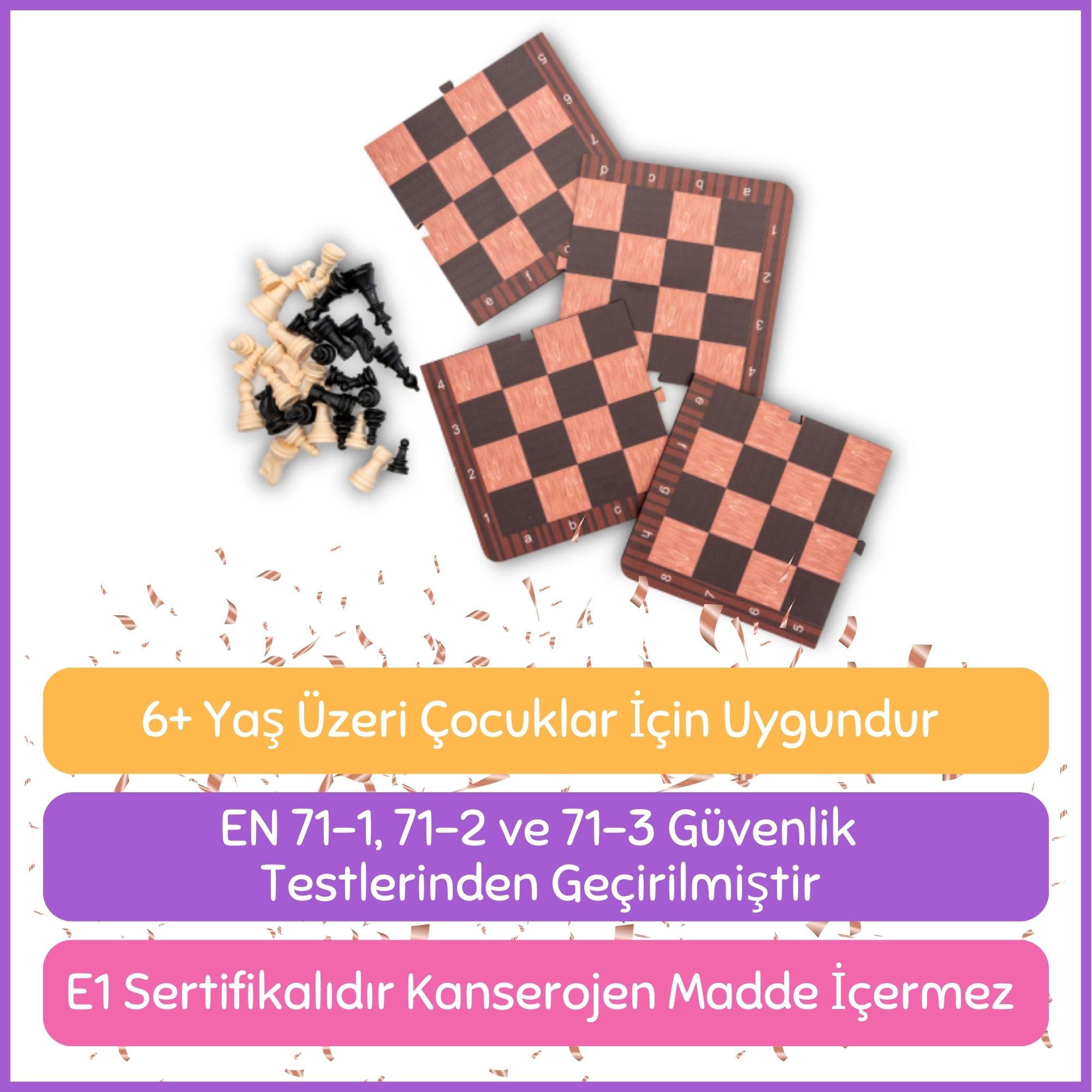 Tahta Boyutu: 30x30 cm boyutlarında, taşınabilir ve kolay saklanabilir. Oyun tahtası, açılabilir ve katlanabilir özelliğiyle pratik bir kullanım sağlar.