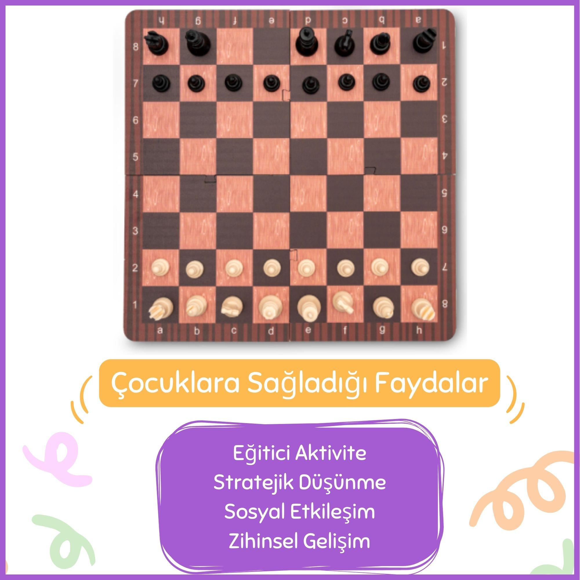 Eğitici ve Eğlenceli: Bu satranç seti, çocukların stratejik düşünme, problem çözme ve ileri planlama gibi zihinsel becerilerini geliştirirken, eğlenceli vakit geçirmelerini sağlar.