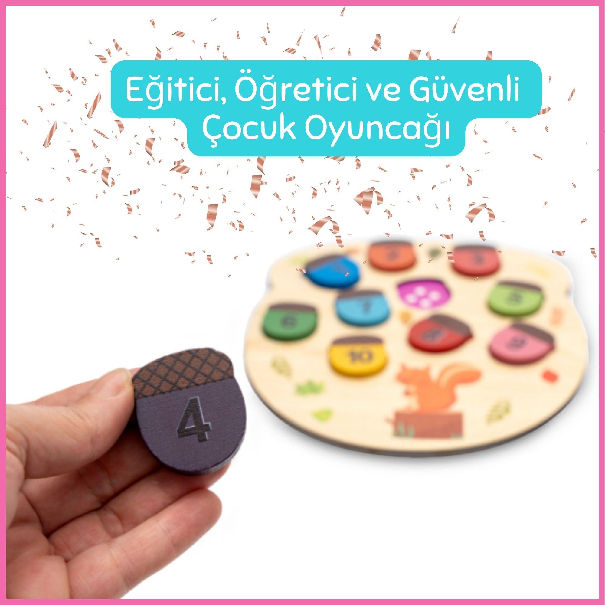 Eğitici Ahşap Sincap Rakamları Öğreniyorum Oyunu - Çocuklar İçin Montessori Gelişim Oyuncağı