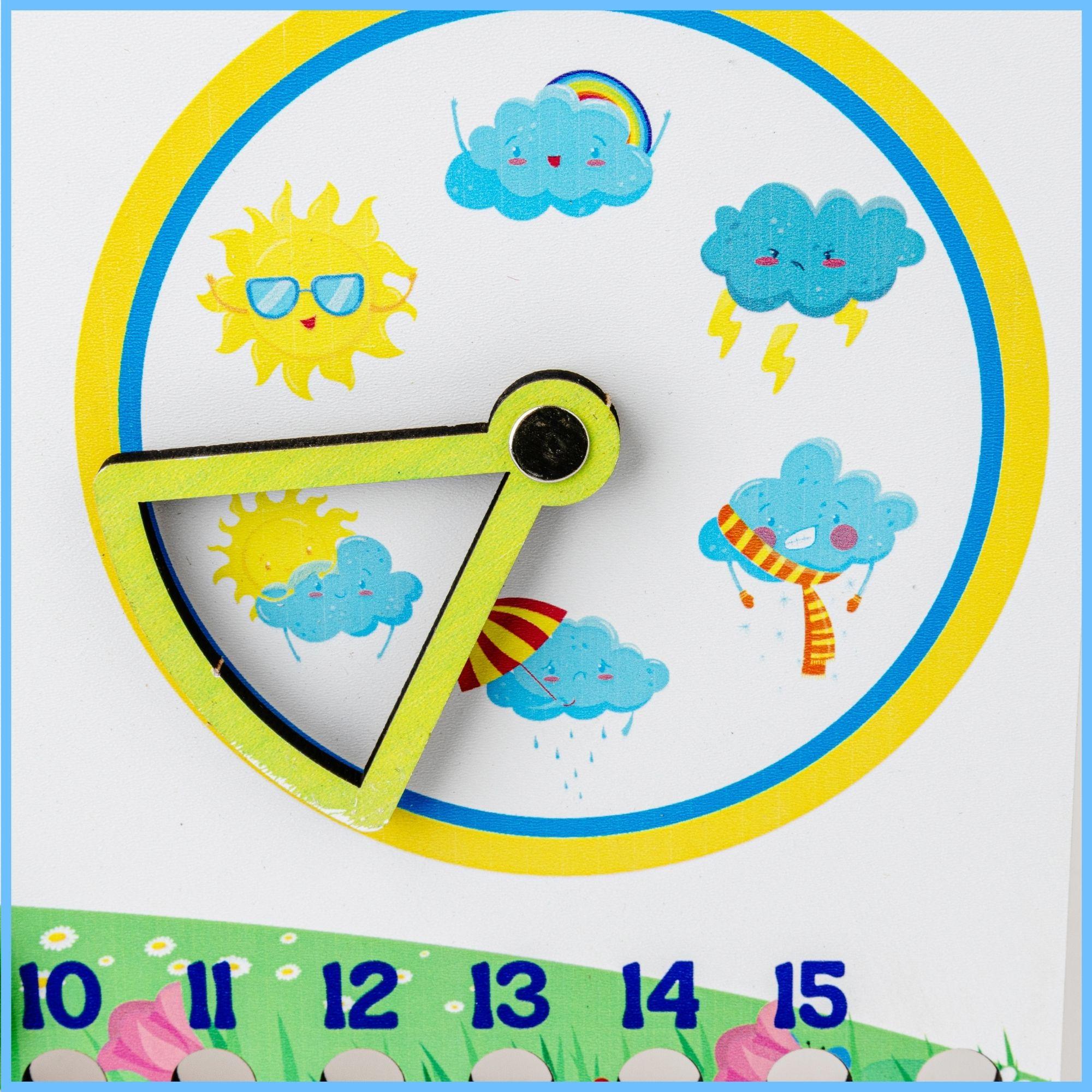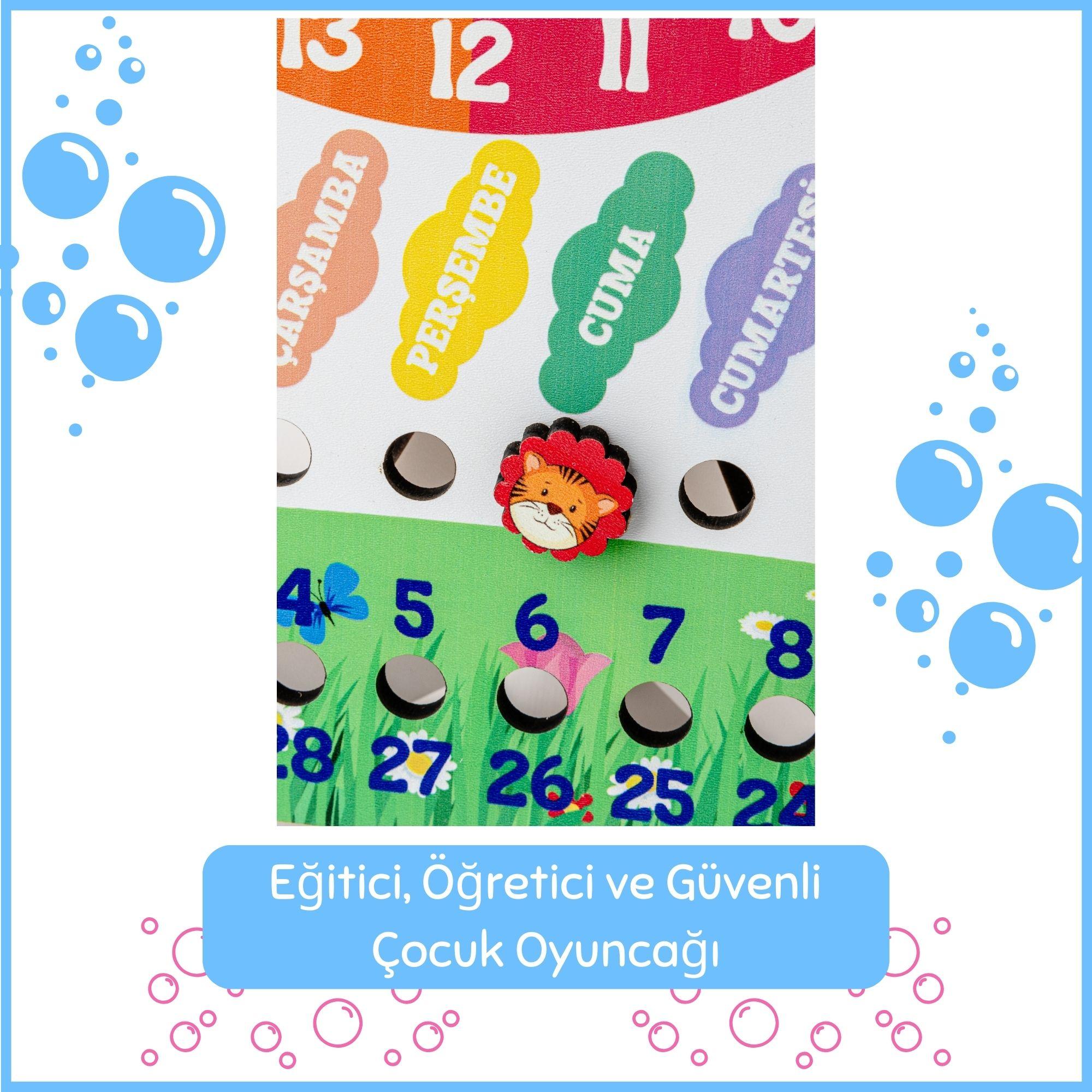Eğitici İçerik: Saat, gün, ay, mevsim ve hava verilerini öğrenmeyi kapsayan genel bir takvim düzeni.