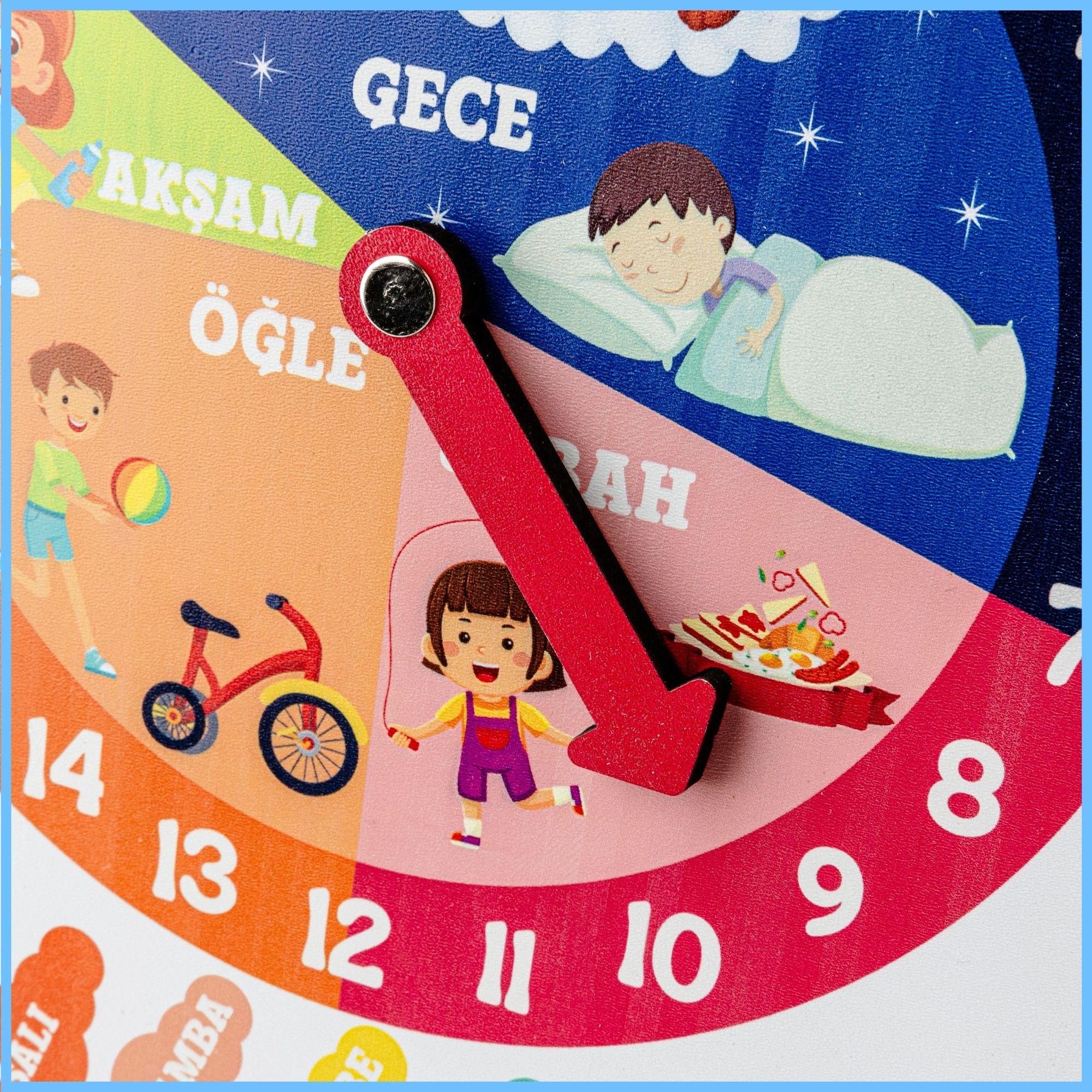 Kolay Kullanım: Hareketli parçalarıyla çocukların kolayca günleri, saatleri ve mevsimleri ayarlamasına olanak sağlar.