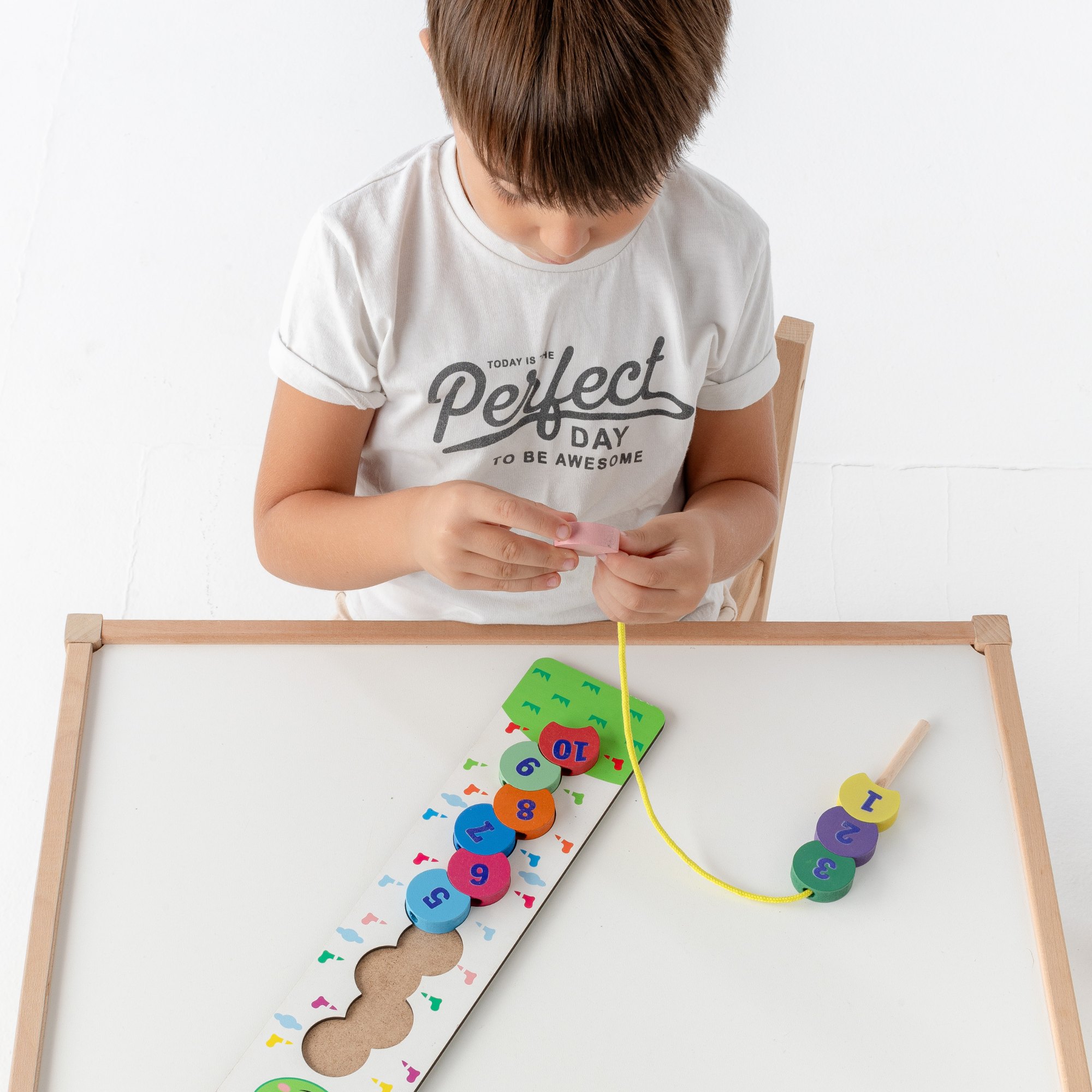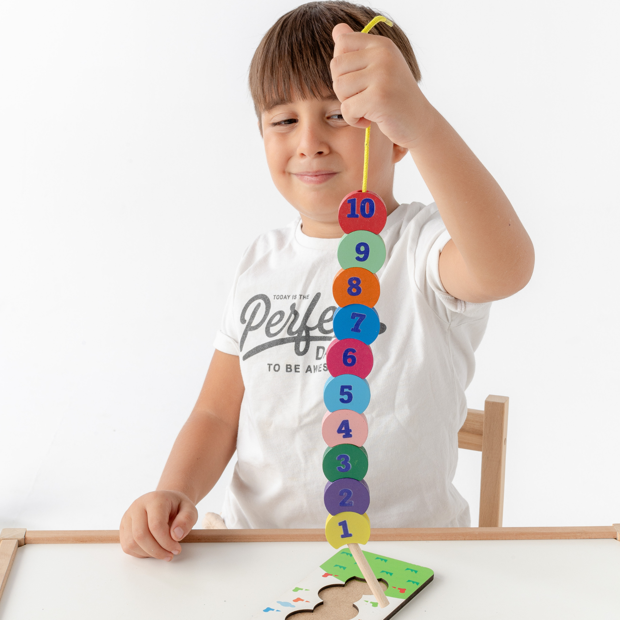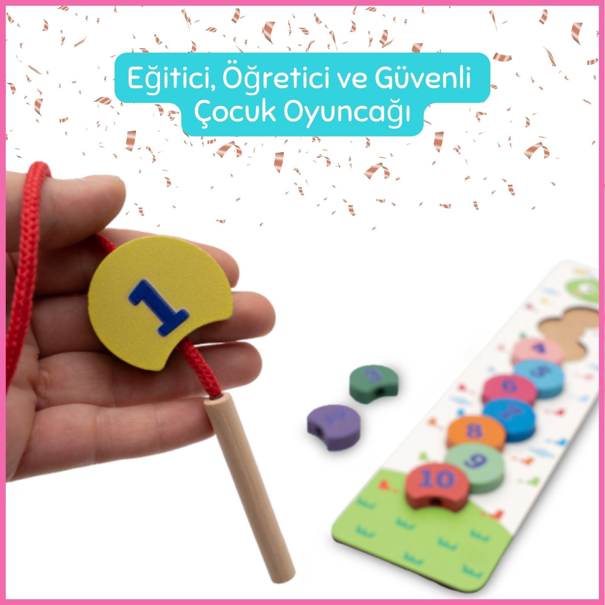 Hopiers Ahşap Tırtıl İpe Dizme Oyunu - Montessori Eğitici Oyuncak - Renkli Sayılarla İnce Motor Becerileri Geliştirin