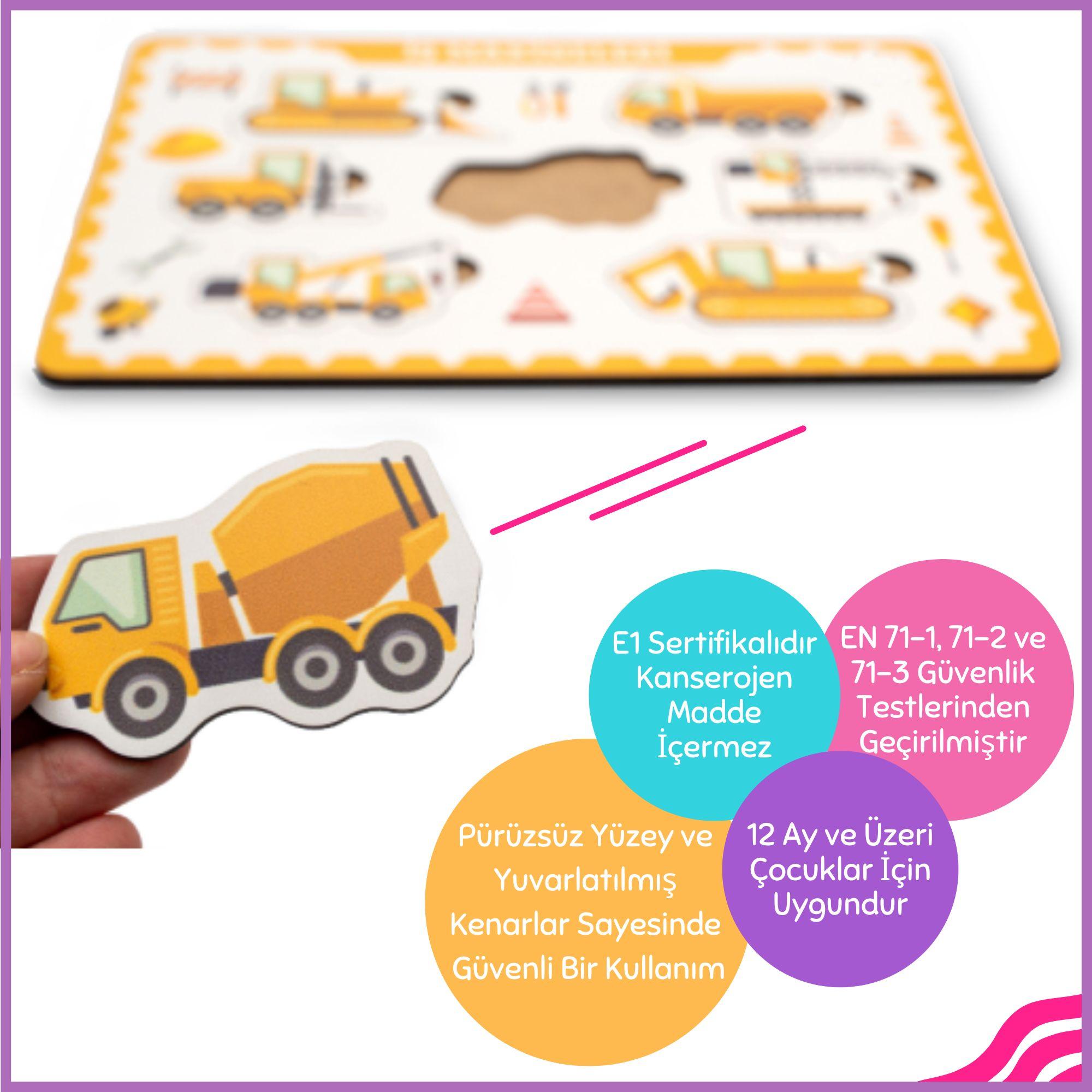 Tema: İş Makinaları teması ile eğitici ve öğretici bir puzzle.