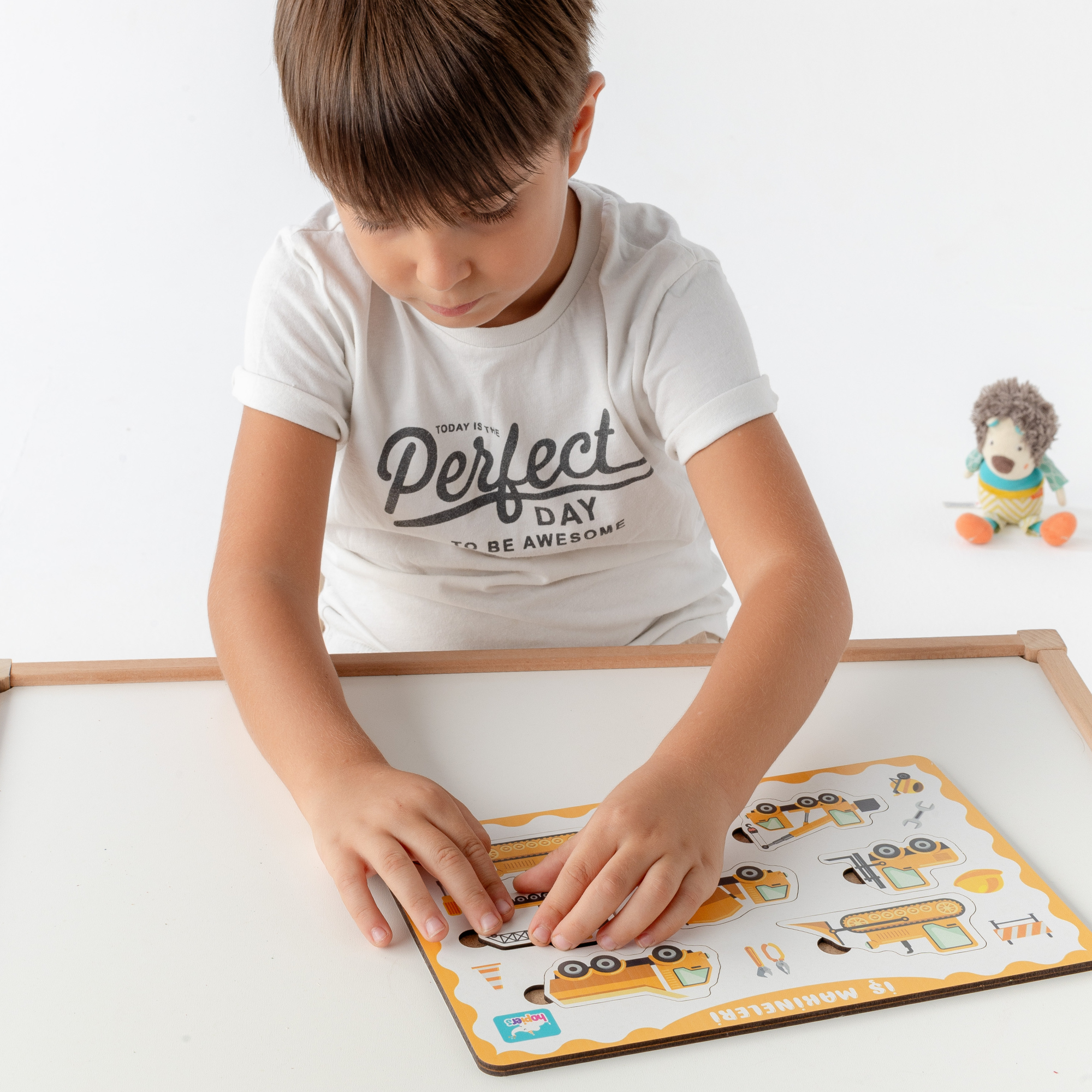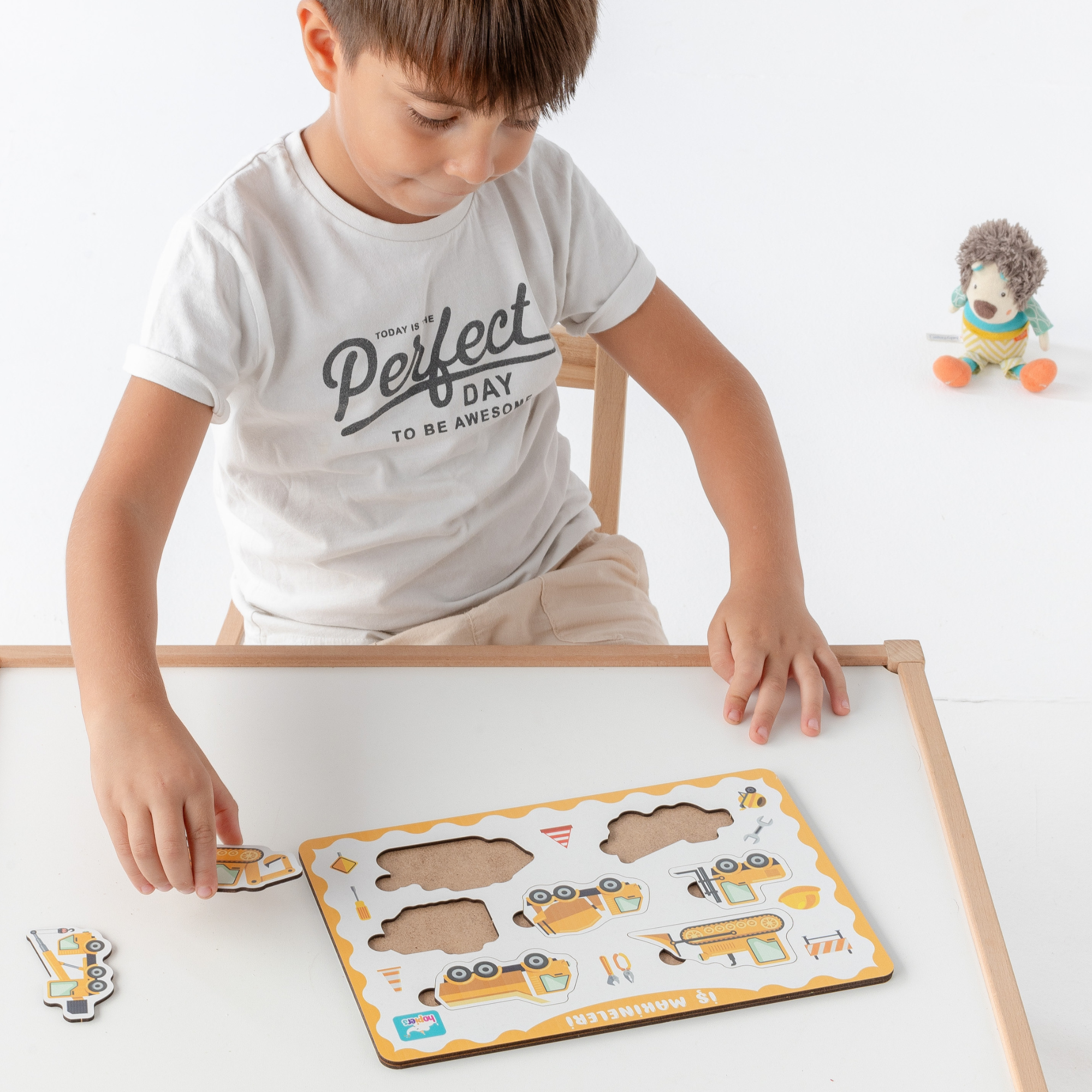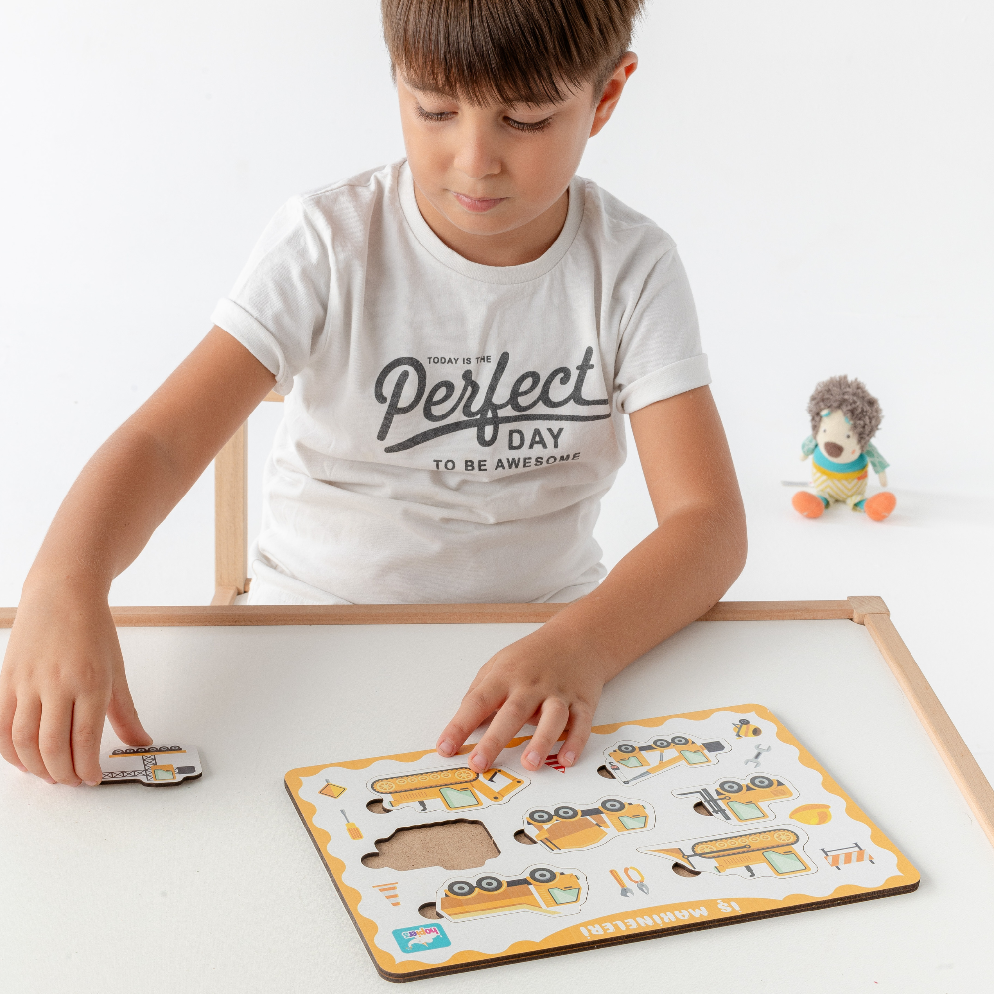 Montessori eğitim formülüne uygun olarak tasarlanan Hopiers Montessori İş Makineleri Ahşap Bultak Puzzle Seti, çocukların el-göz koordinasyonunu, ince motor becerilerini ve problemin çözülmesini sağlamak için geliştirilmiştir.