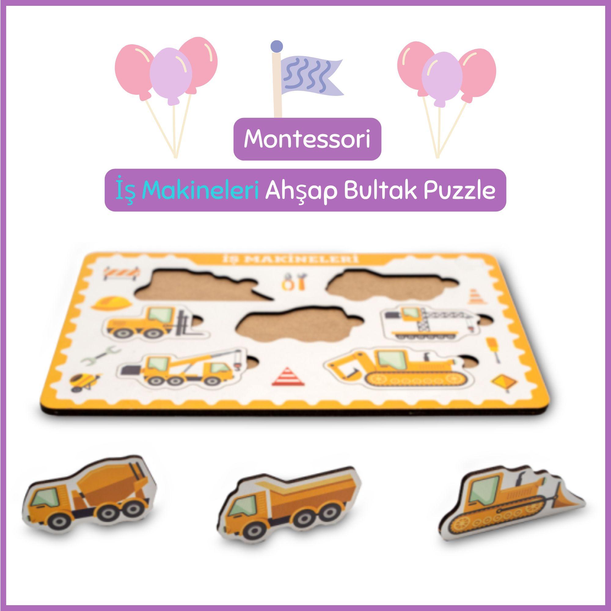 Hopiers Montessori İş Makineleri Ahşap Bultak Puzzle Seti - Eğitici, Öğretici ve Güvenli Çocuk Oyuncağı