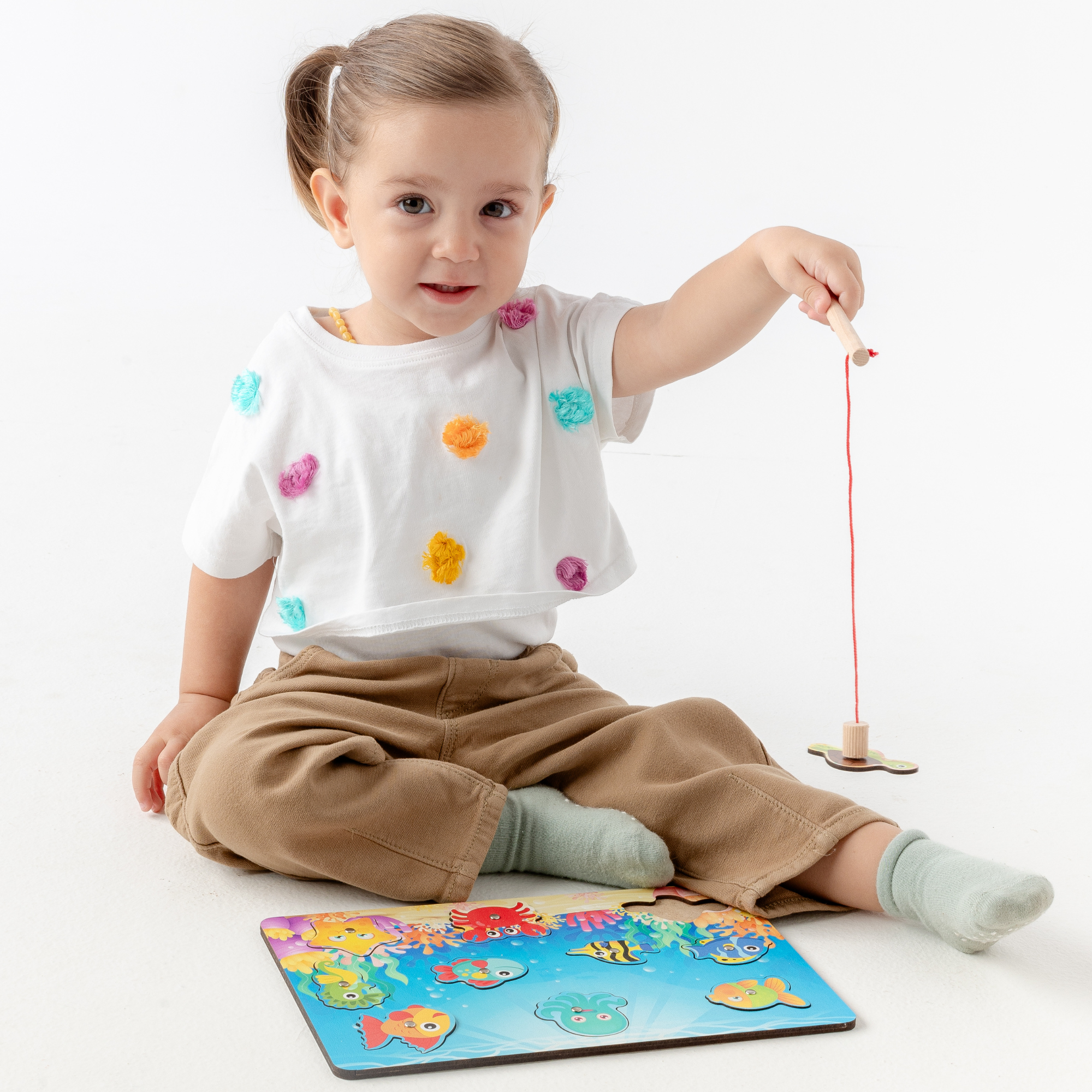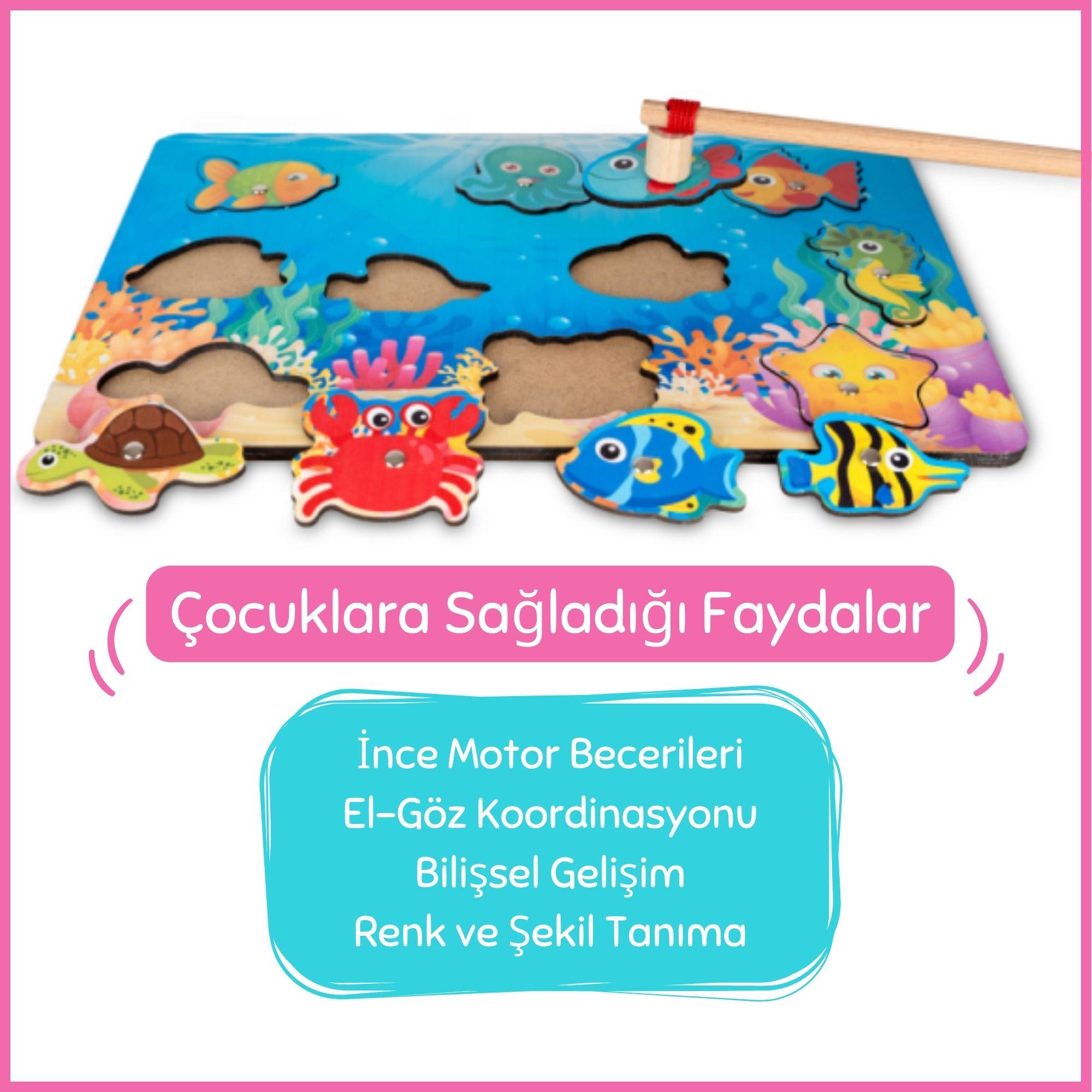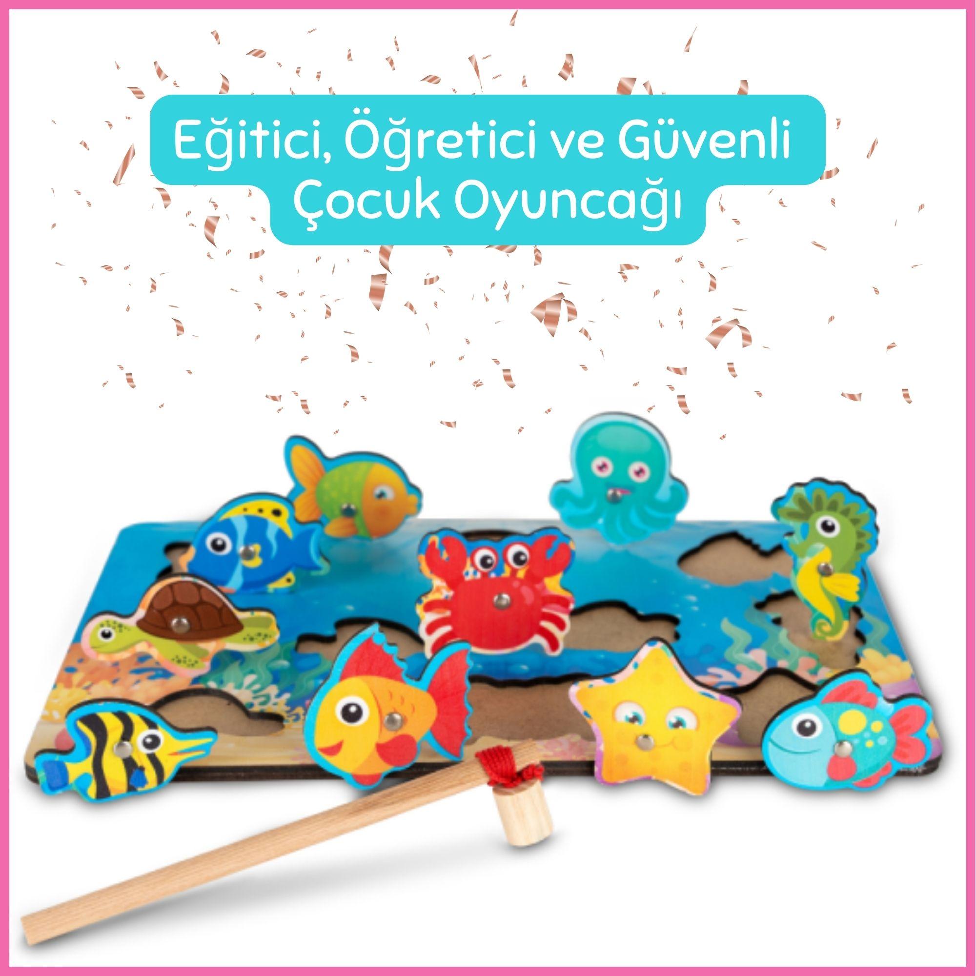 Mıknatıslı Ahşap Balık Tutma Oyunu / 1+ Yaş / Eğitici, Eğlenceli ve Güvenli Ahşap Puzzle Oyun Seti