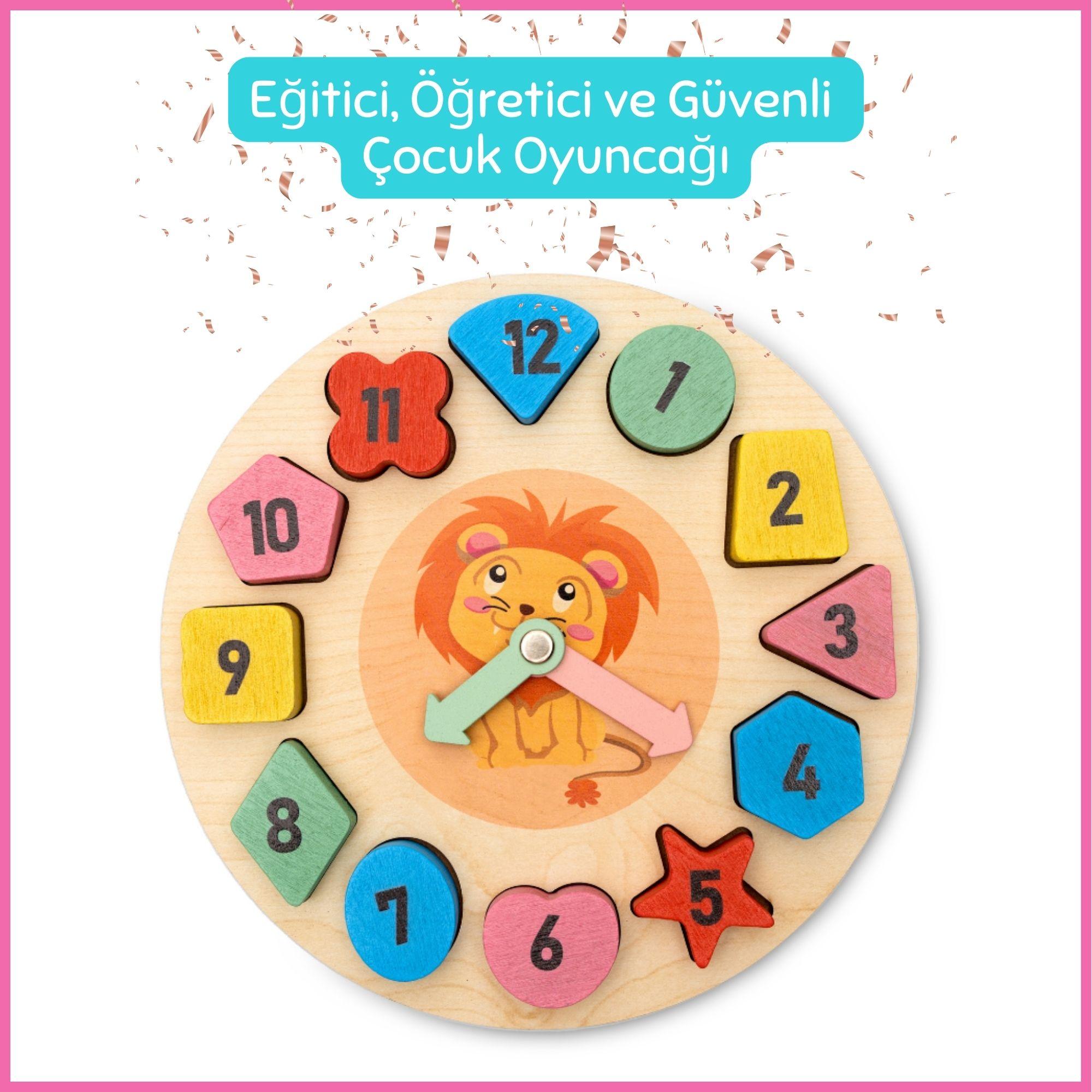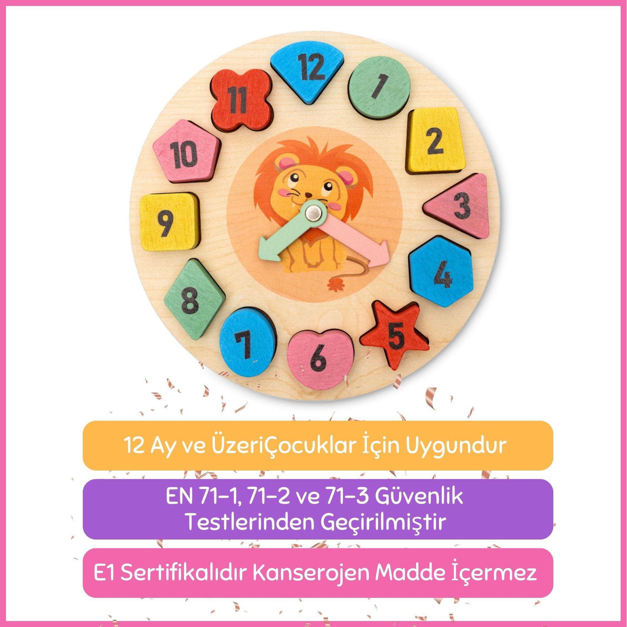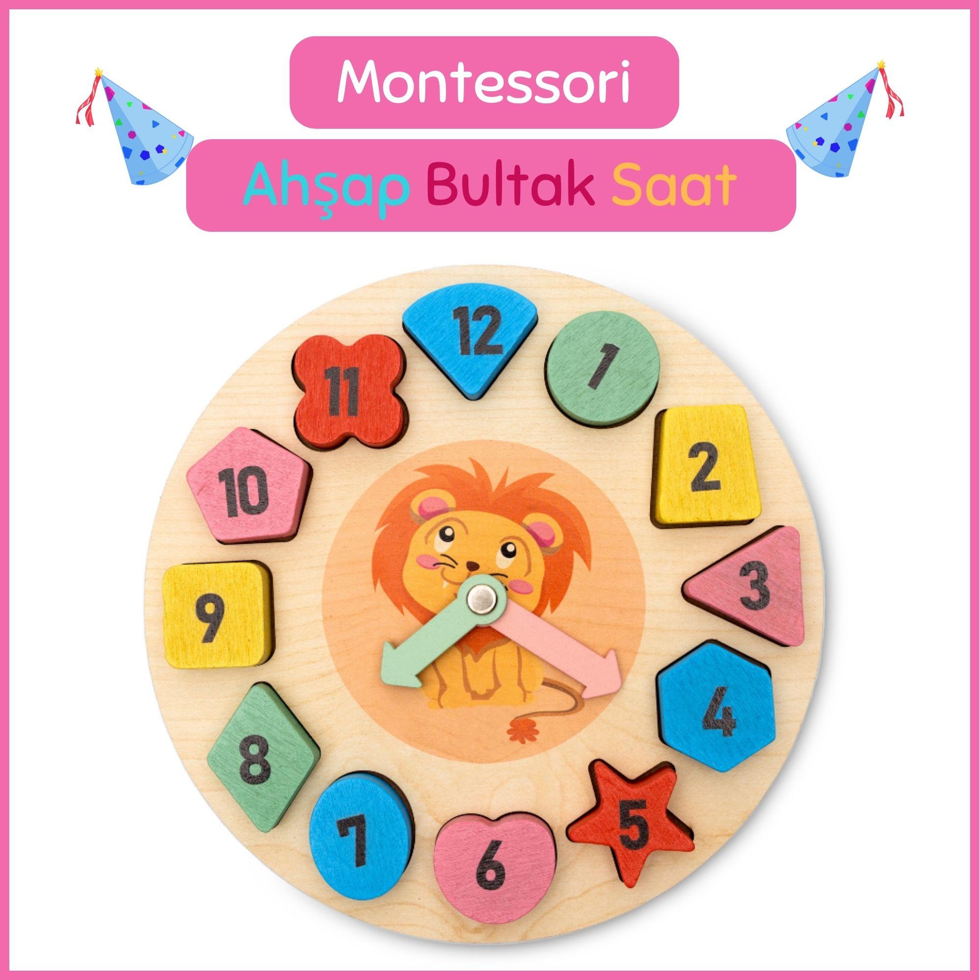 Renkli Ahşap Bultak Saat - 1+ ve Üzeri - Çocuklar İçin Güvenli, Eğitici ve Zaman Öğretici Oyuncak