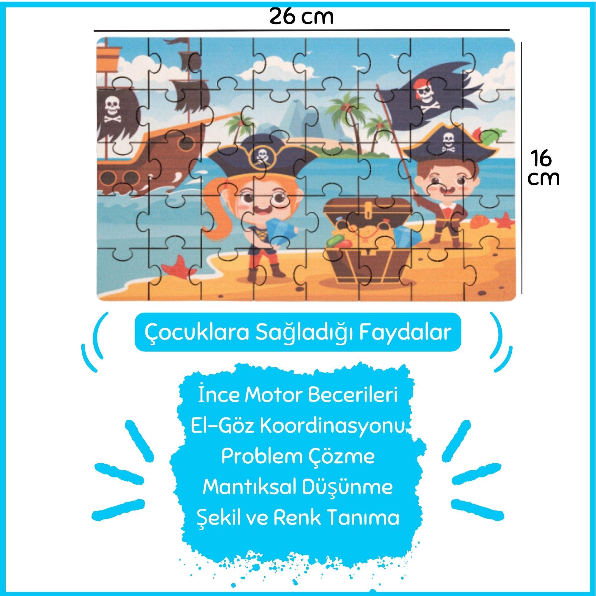 Şekil ve Renk Tanıma: Pirates temalı bu puzzle, çocuklarınızın hayal gücünü canlandırır ve onları Korsanlar hakkında bilgi sahibi yapar.